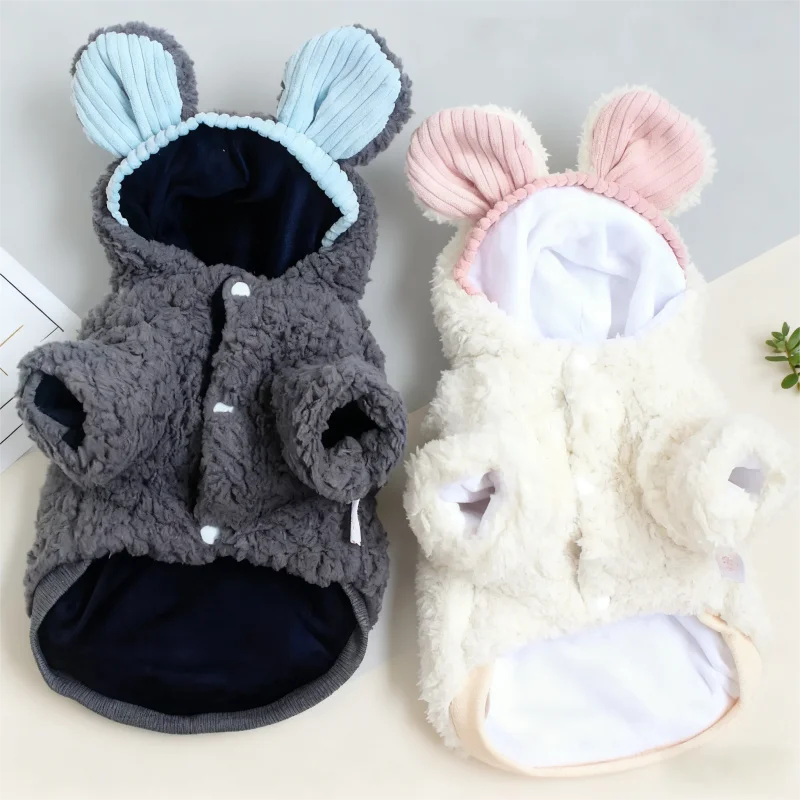 Chaqueta de perro de felpa de lujo, abrigo, ropa cálida de invierno para perros, sudaderas con capucha suaves y bonitas para cachorros, abrigo para gato con patrón de oso, chaqueta para mascotas, ropa para caniche
