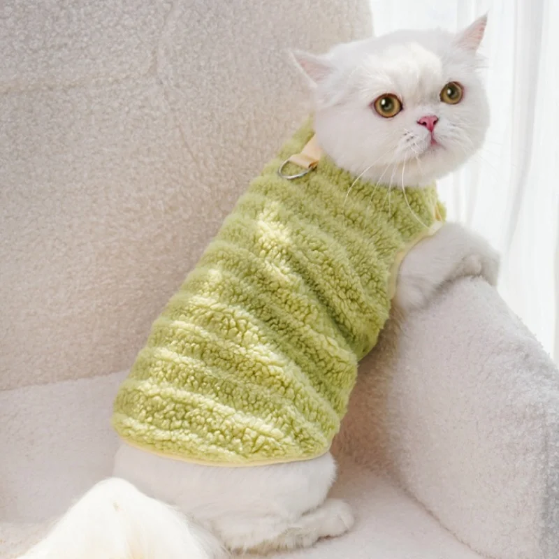 Chaqueta de perro de felpa de lujo, abrigo, ropa cálida y suave para perro, cárdigan a rayas bonito para cachorro, abrigo, chaleco de gato de invierno, chaqueta, trajes para mascotas Chihuahua