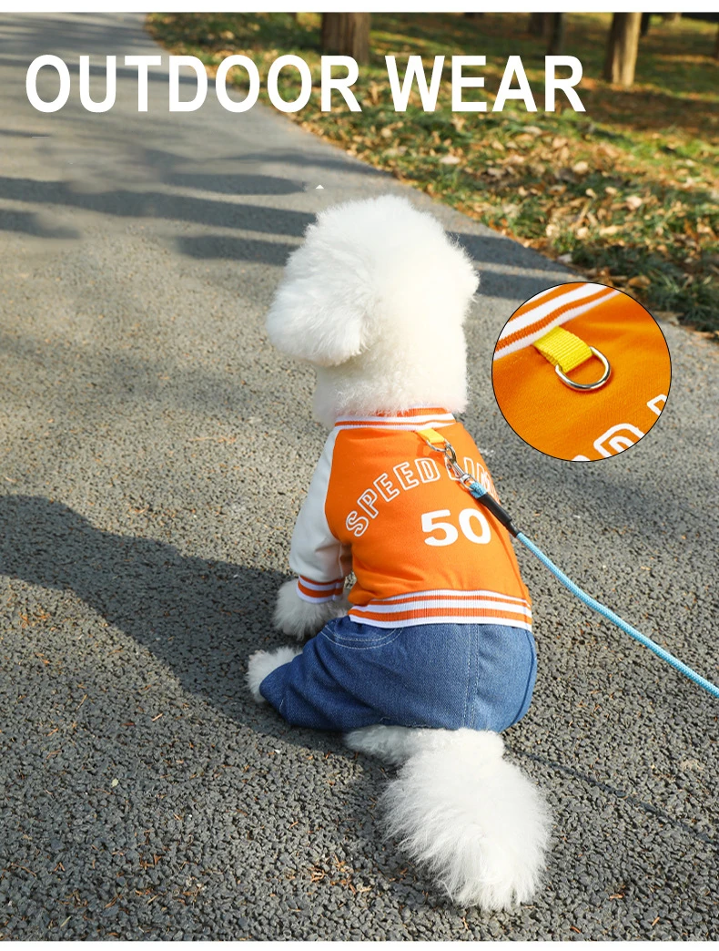 Chaqueta de mono para perros con pantalones vaqueros, mono, trajes de una pieza de 4 patas para primavera/otoño, ropa para mascotas para perros pequeños y medianos