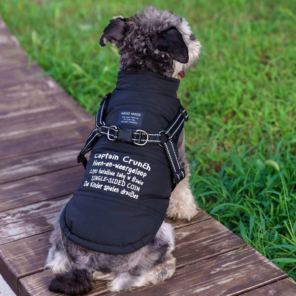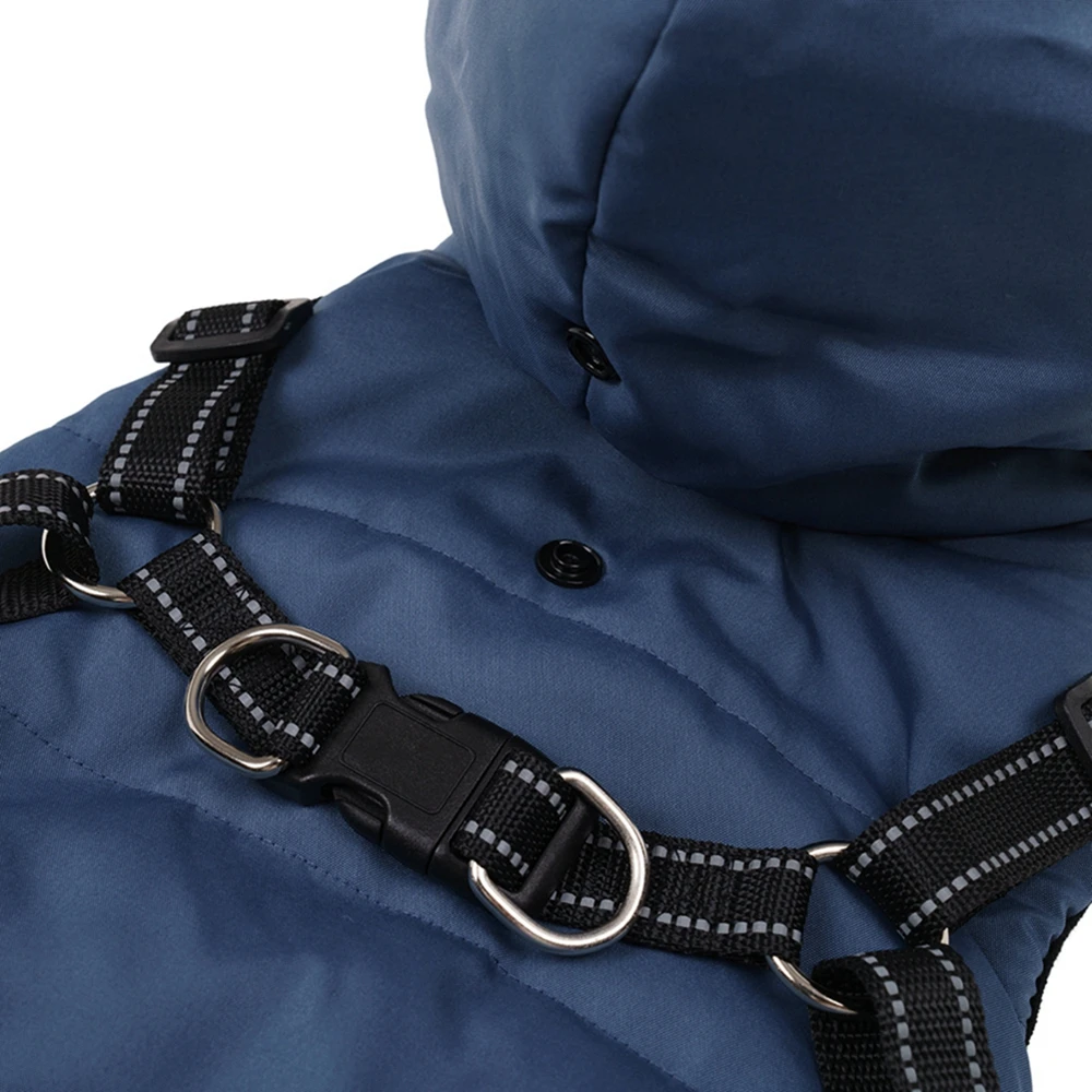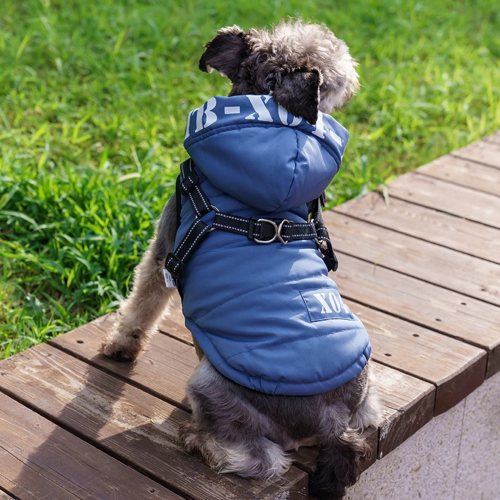 4. Use una cremallera en el pecho, y la espalda está unida al pecho y al cinturón de tela trasero, que no tirará de la ropa, no dañe el pelo del perro y juegue un papel apretado a prueba de viento y cálido