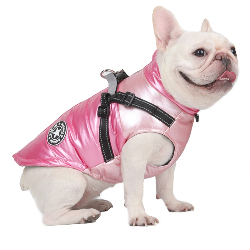 Chaqueta para perros con arnés, ropa cálida de invierno para perros pequeños y medianos, abrigo impermeable para mascotas, disfraz de Bulldog Francés de Chihuahua