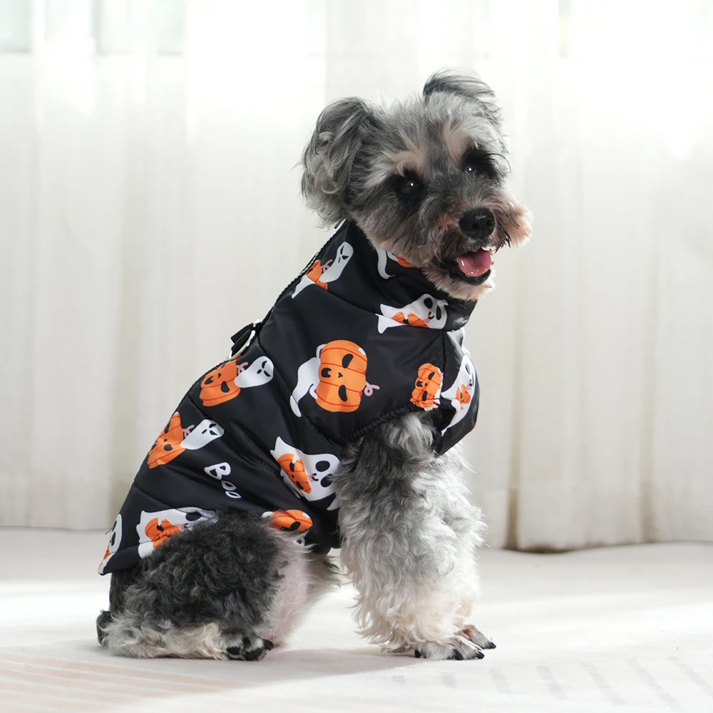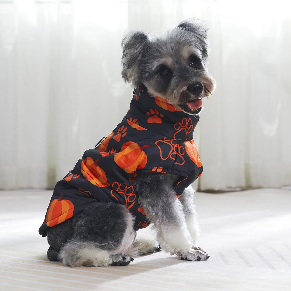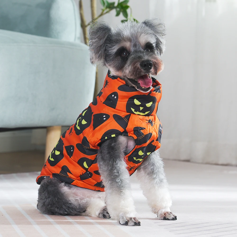 Chaqueta para perro de Halloween, abrigo, ropa para cachorros de otoño e invierno para perros pequeños y medianos, gato, divertido estampado de calabaza, disfraz de Cosplay para mascotas Yorkie