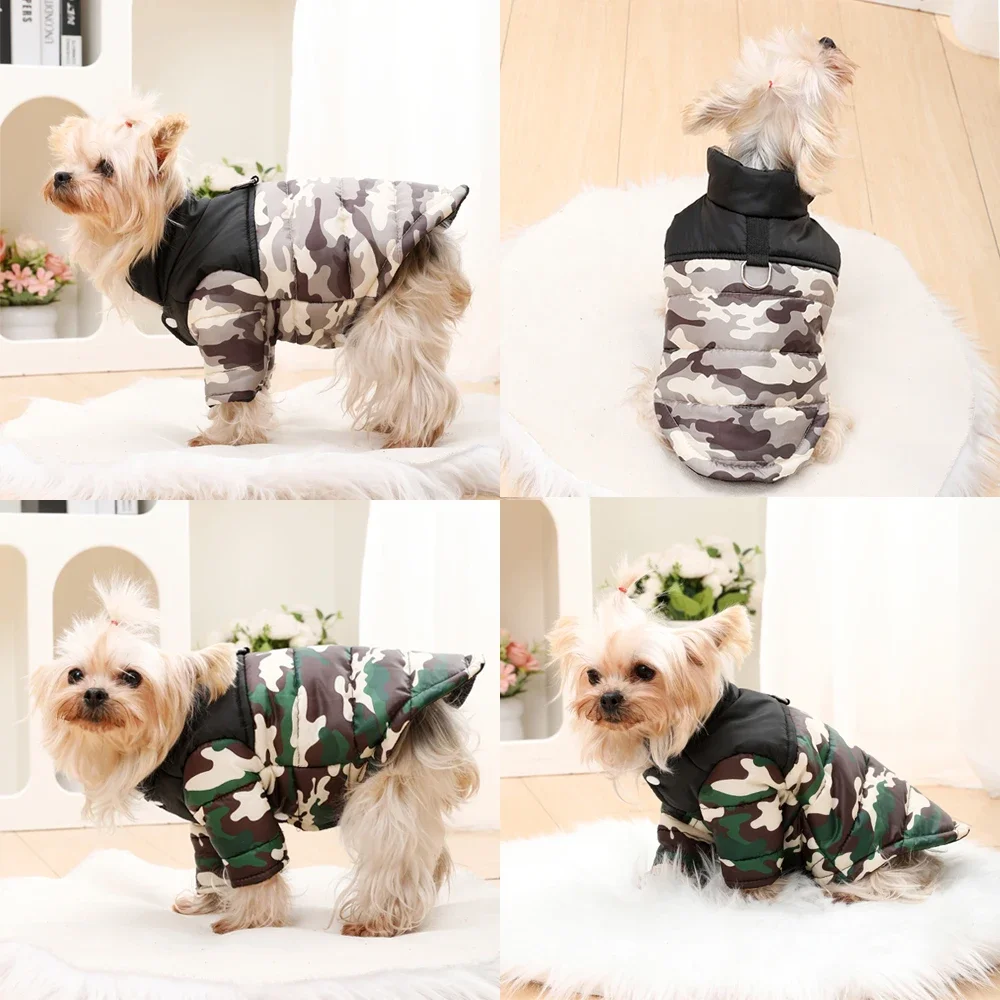 Chaqueta para perro, ropa cálida de invierno para mascotas para perros pequeños y medianos, chaleco acolchado impermeable para cachorros, abrigo con anillo en D, trajes Yorkie Pug