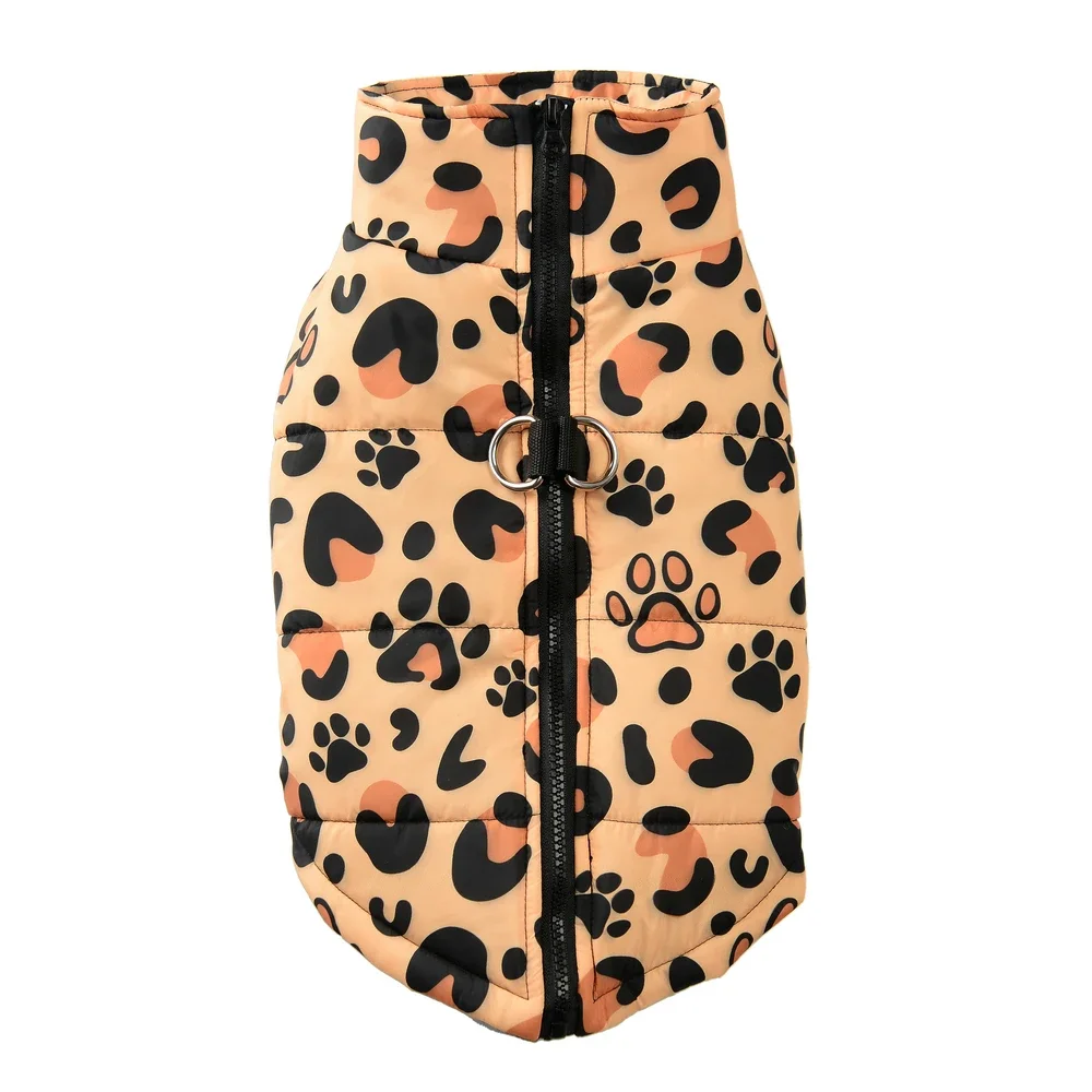 Chaqueta para perro, ropa cálida de invierno para perros pequeños y medianos, abrigo con estampado de leopardo para cachorros de mascota con anillo en D, trajes de Pug Chihuahua Yorkie