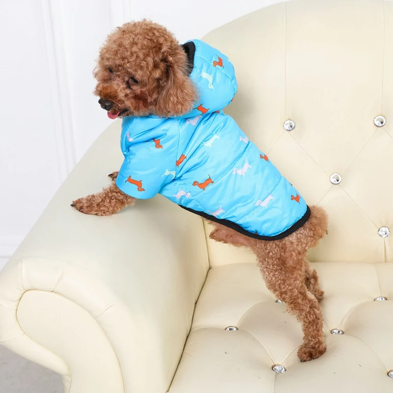 5. El sencillo abrigo con capucha diseñado con lindos patrones puede decorar bien al perro para que sea más atractivo y moderno.