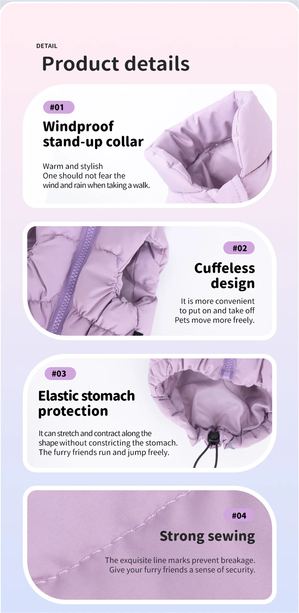 La tela fácil de mantener de esta parka para perros la hace conveniente para los dueños de mascotas ocupados, lo que garantiza que se mantenga fresca y limpia.