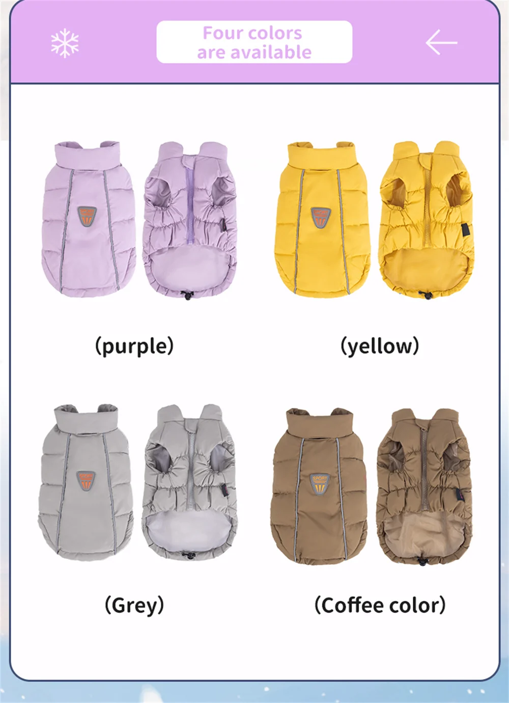 Disponible en una variedad de tamaños, este plumón y parka para perros garantiza un ajuste perfecto para su mascota, mejorando su comodidad y movilidad.