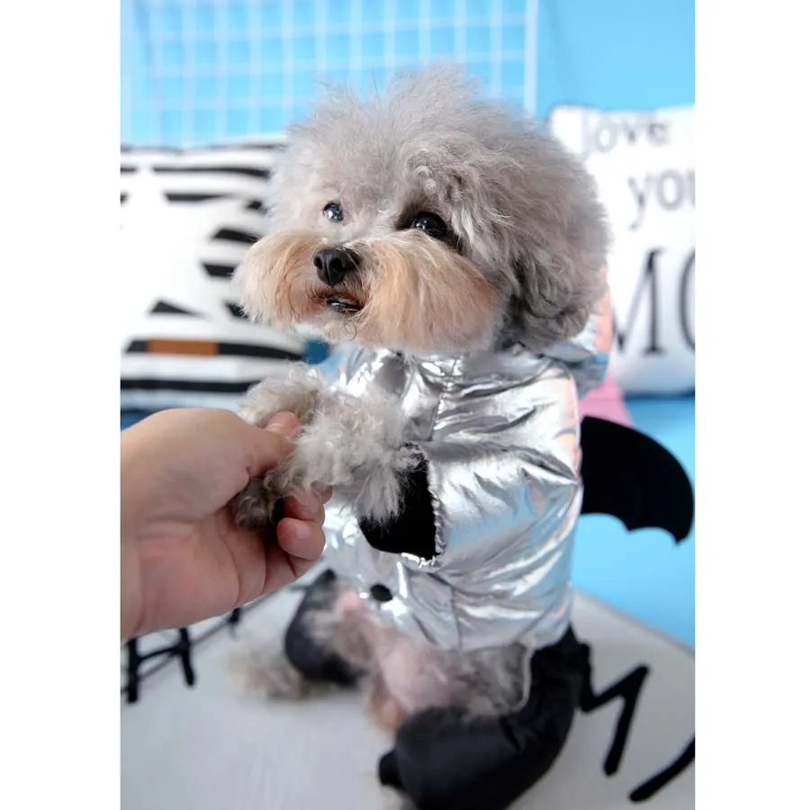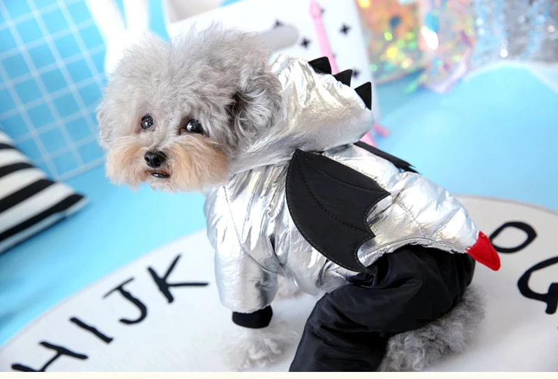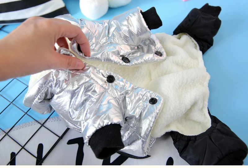 Mono impermeable de invierno para perros, chaqueta con forro polar para perros pequeños, ropa plateada para cachorros, atuendo de cuatro patas para Yorkshire