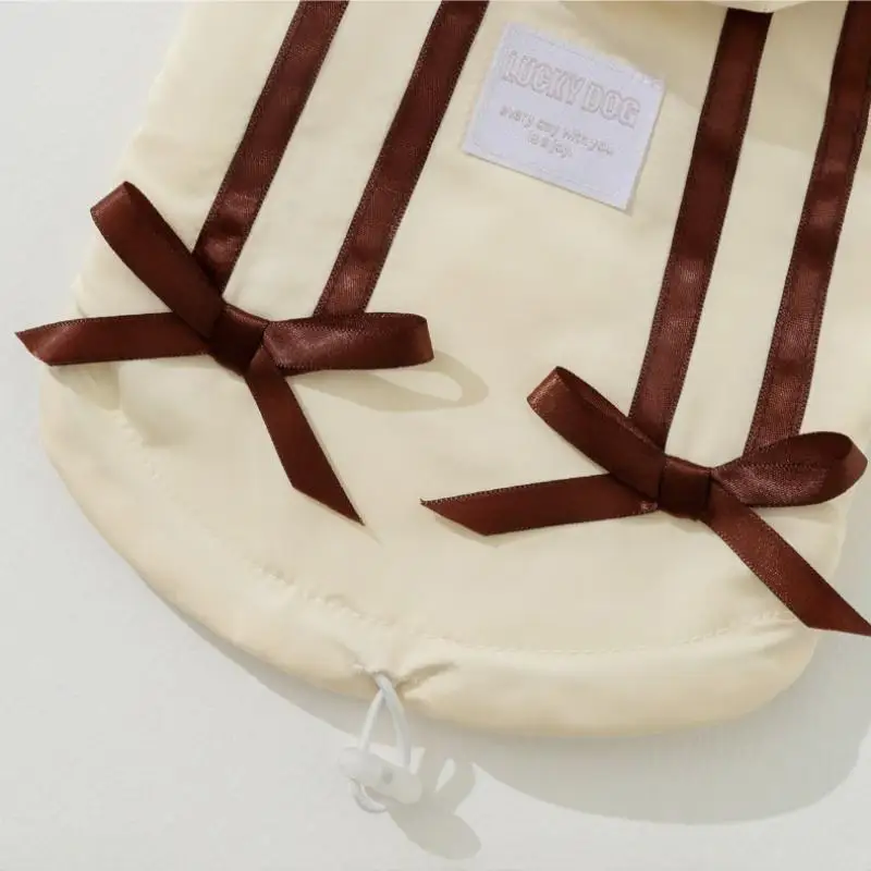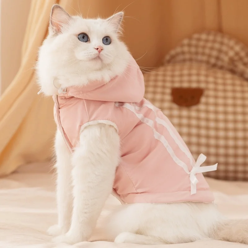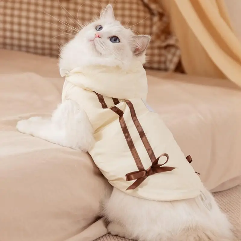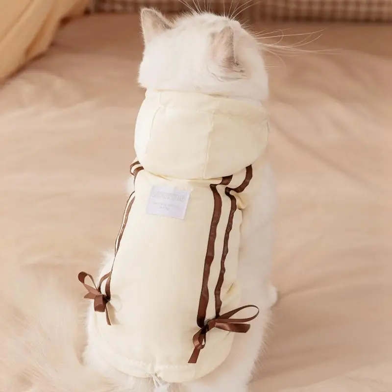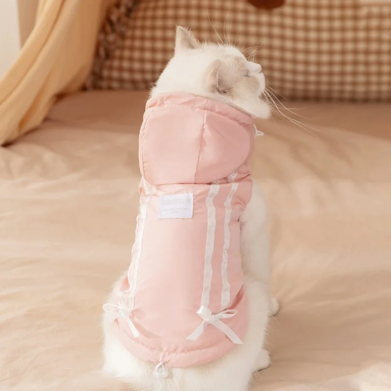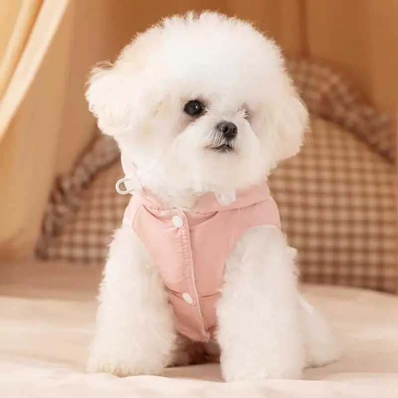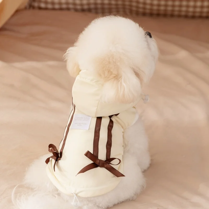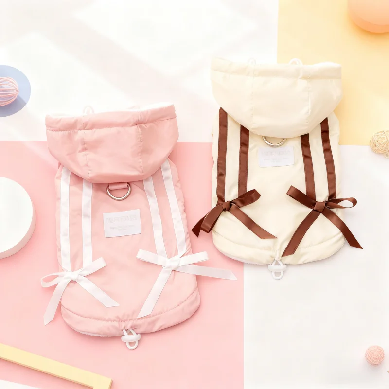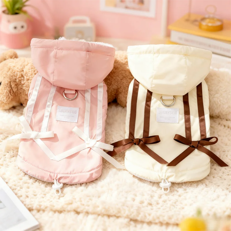 Cute Bow Pet Dog Down Jacket Winter Dog Clothes Warm Puppy Hoodie Coat with D-Ring Fashion Cat Vest Coat Chihuahua Pet Costume