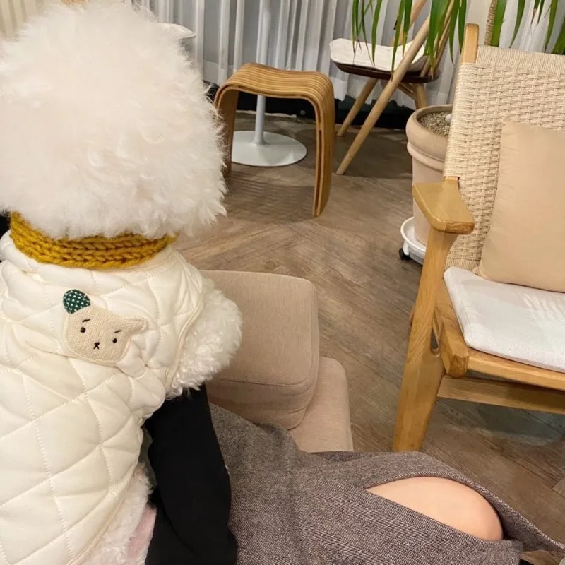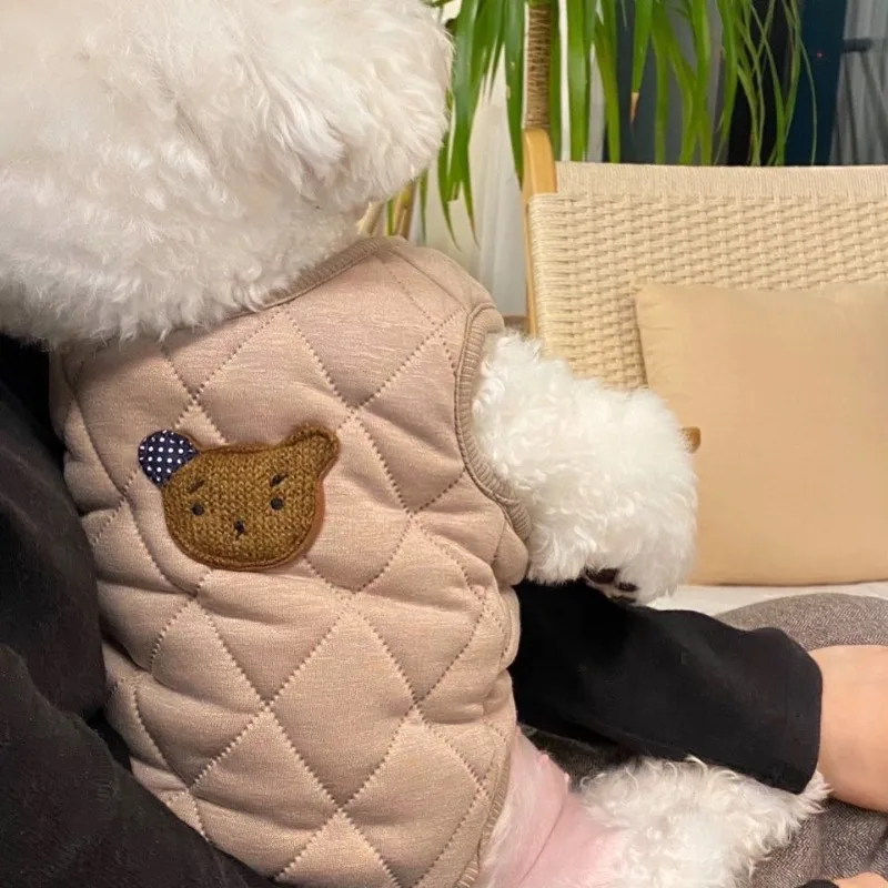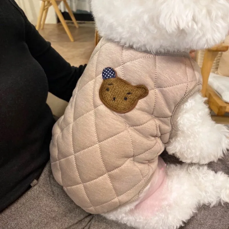 Chaqueta de plumón para perro a la moda, ropa cálida de invierno para perro, chaqueta con estampado de oso para cachorro, abrigo suave bonito para gato, disfraces para mascotas, ropa de Bulldog Francés