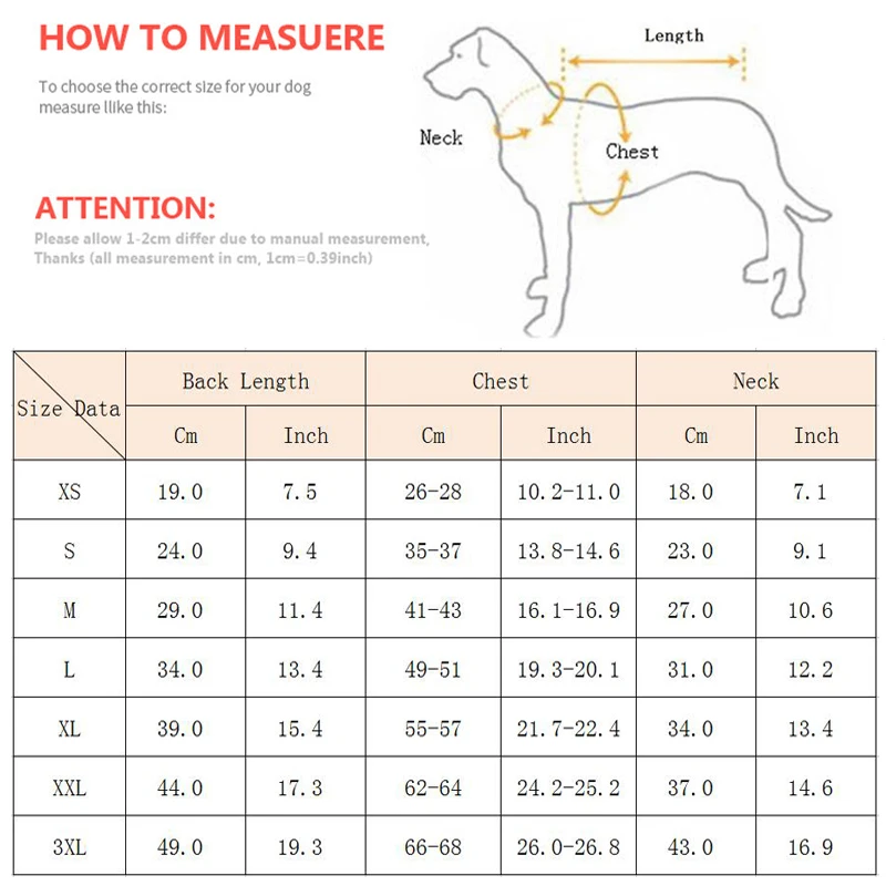 1. Por favor, compruebe las medidas de su mascota para asegurarse de que la ropa se ajuste a las mascotas antes de realizar el pedido (1 pulgada=2,54 cm)