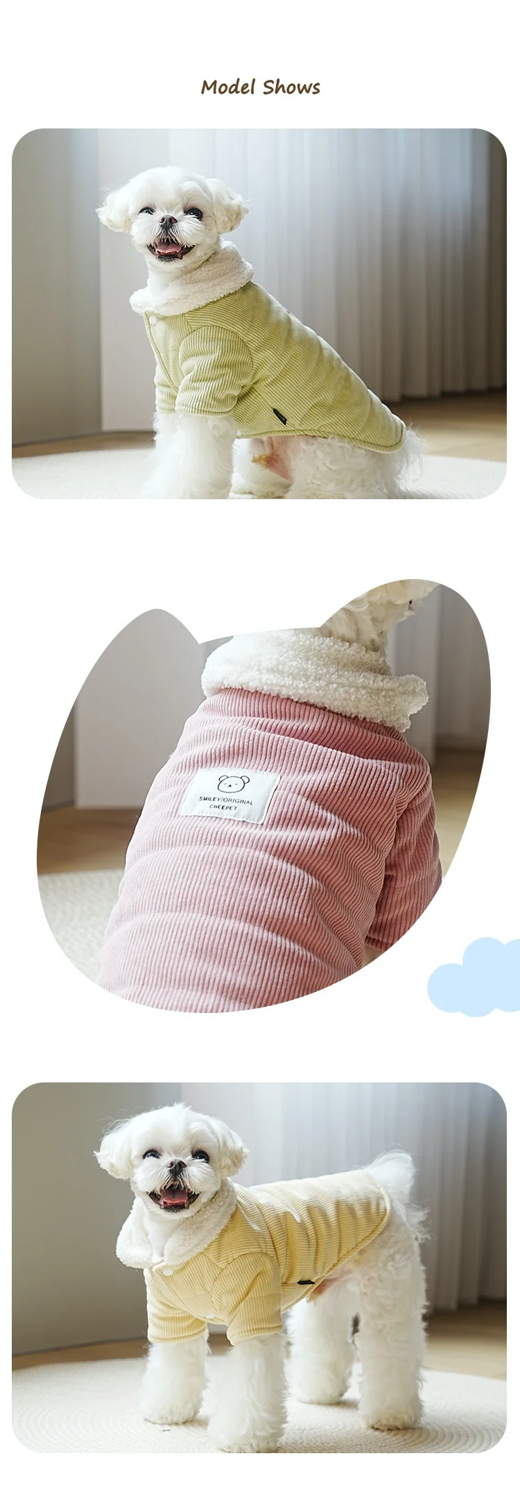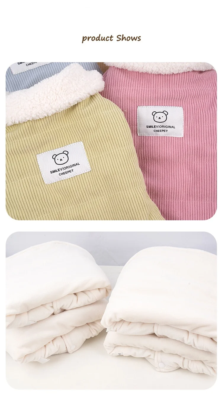 Chaqueta polar de invierno para perros pequeños Mangas largas Abrigo cálido de felpa Macarons para cachorros Pijama de peluche Bichón Suéter rosa otoñal