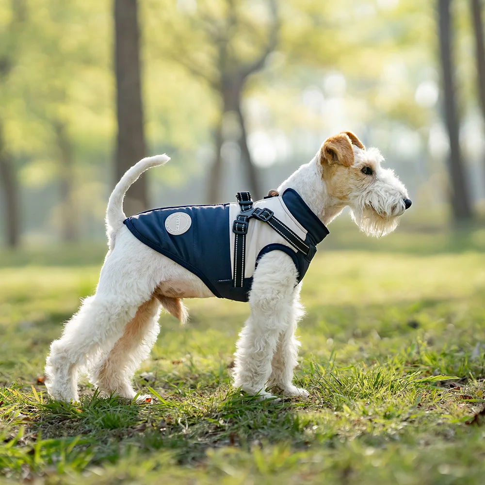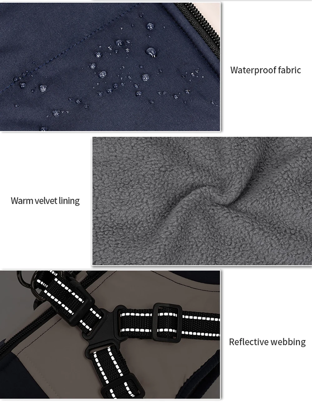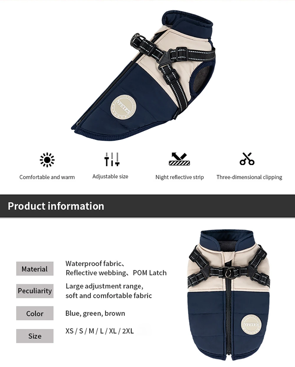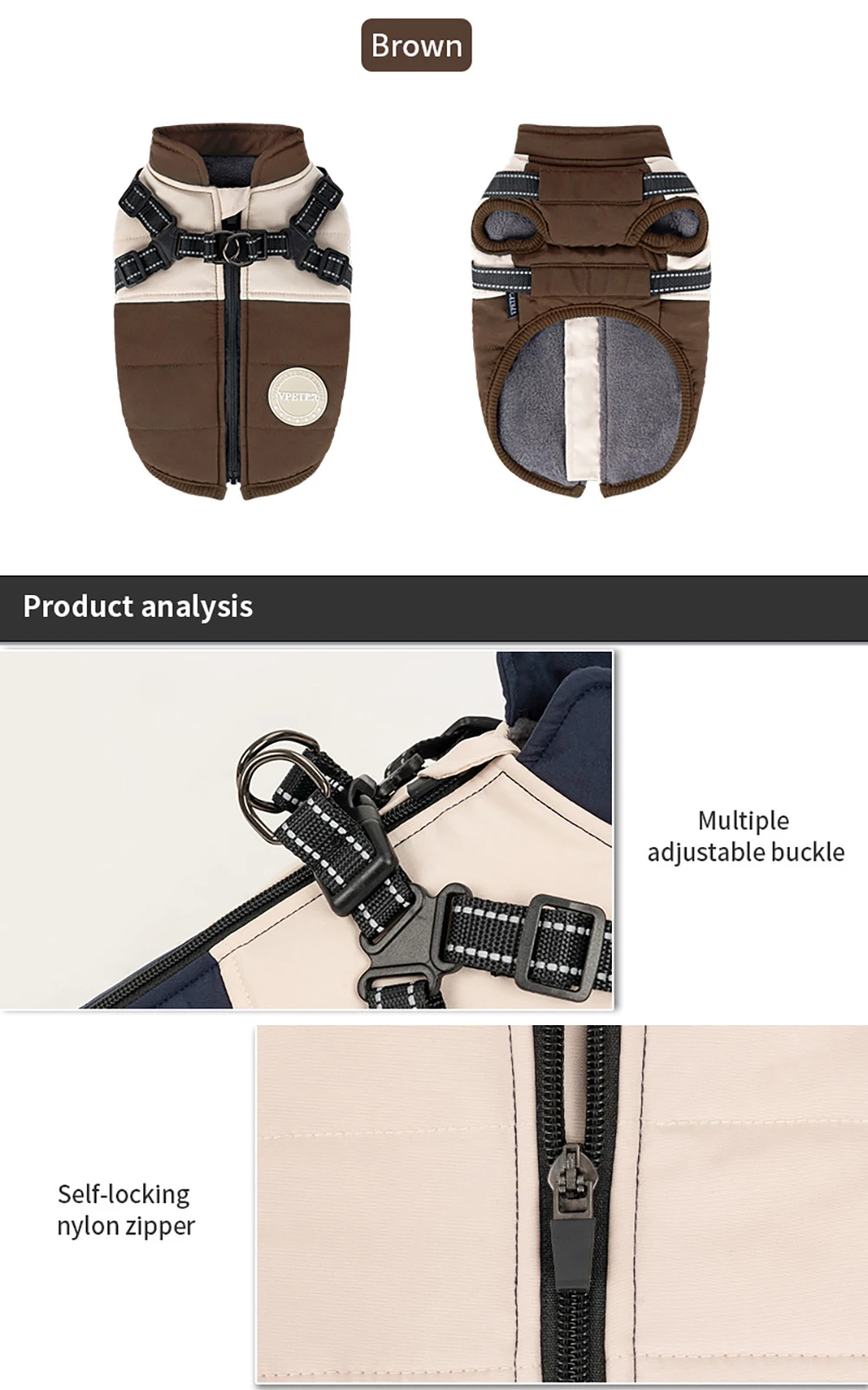 A prueba de viento: la banda de cuello alta retráctil puede prevenir eficazmente el viento.La banda elástica del abdomen está diseñada para que el cuerpo se ajuste mejor y se mantenga caliente.El diseño de tira reflectante en la parte posterior garantiza eficazmente la seguridad del perro que camina por la noche.