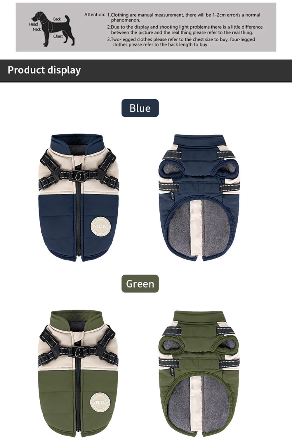 Aviso: ¡Esta ropa tipo chaleco para perros será una armadura para perros en otoño e invierno al aire libre! ¡Impermeable, resistente al viento, cálido, rayas reflectantes de seguridad y multifuncional la convierten en un equipo esencial para los perros en invierno!Para que se ajuste perfectamente a su perro, mida el tamaño de su perro antes de comprarlo, consulte la tabla de tallas o contáctenos para obtener ayuda.