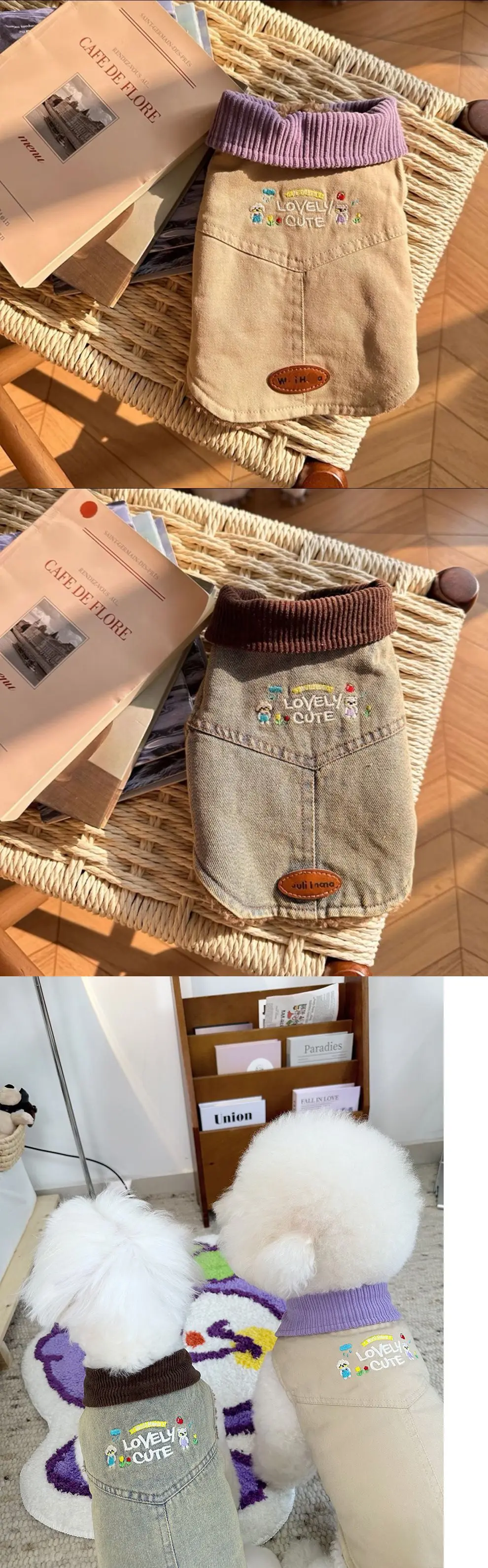 Chaqueta vaquera bordada de otoño e invierno para mascotas, chaleco vaquero para gatos, chaleco cálido y de felpa para otoño e invierno, ropa para cachorros