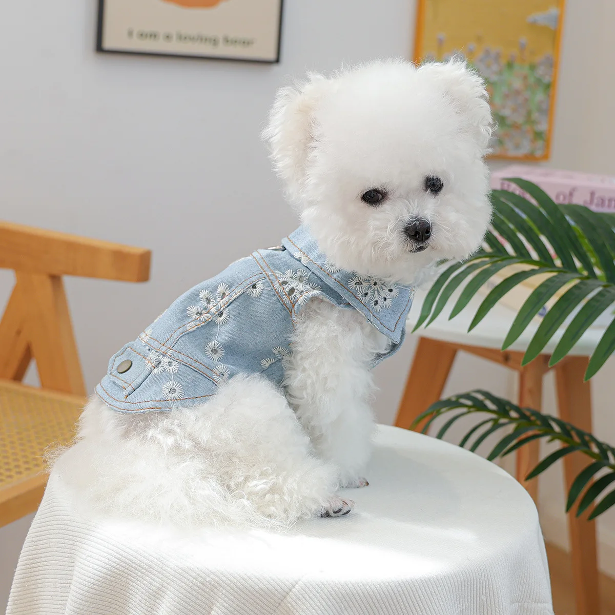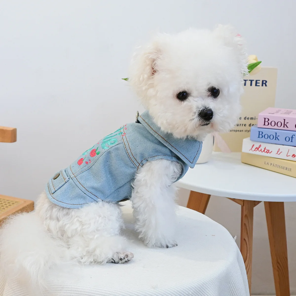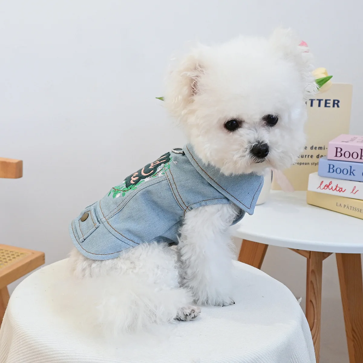 Chaqueta vaquera para cachorros para Chihuahua Yorkie, abrigo ligero ajustable, ropa transpirable para perros con cierre a presión