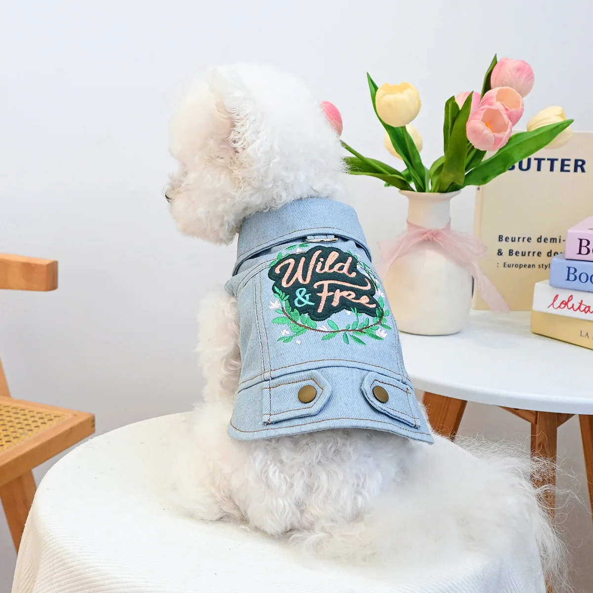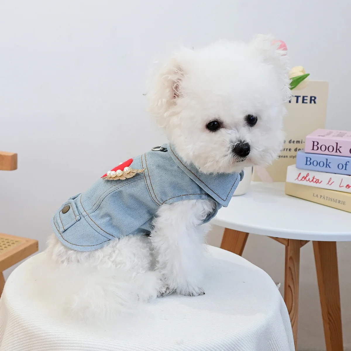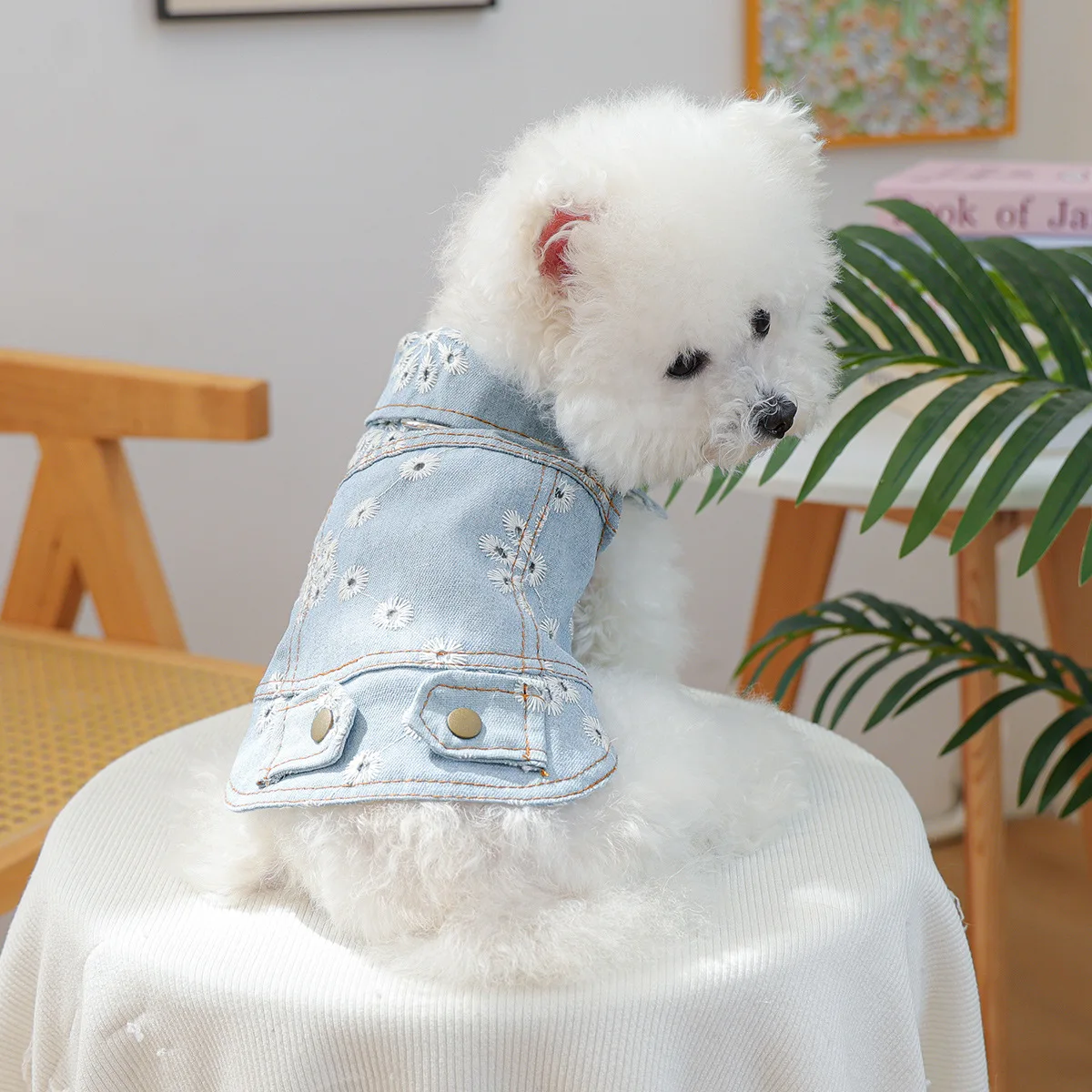 Chaqueta vaquera para cachorros para Chihuahua Yorkie, abrigo ligero ajustable, ropa transpirable para perros con cierre a presión