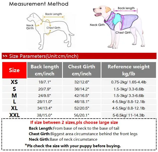 【TAMAÑO ADECUADO】 TAMAÑO X-Small - Pecho: 11'', Longitud de la espalda: 7. 1''. Apto para mascotas de 2 a 4 libras. Su bebé suele usar una talla XS, no significa que todas las tallas XS le queden bien. Mide la talla de tu perro antes de comprar y consulta nuestra tabla de tallas cuidadosamente. No dude en contactarnos si hay algún problema de calidad.