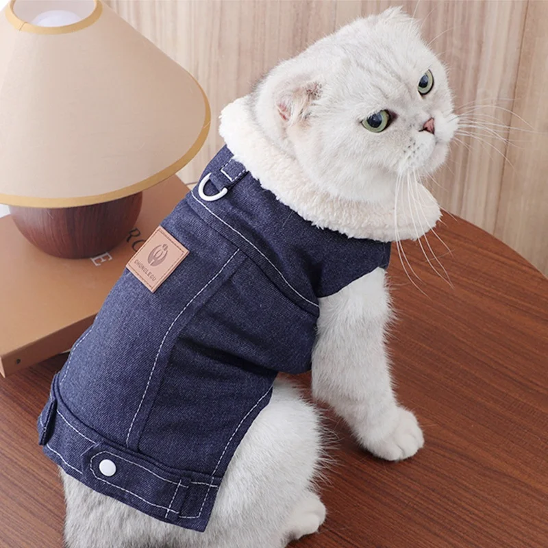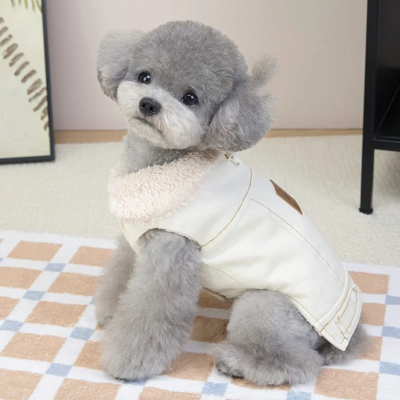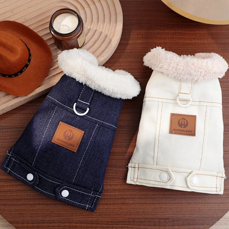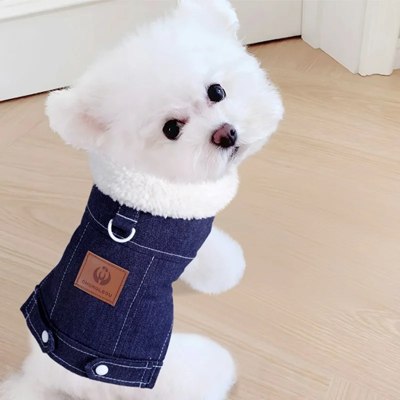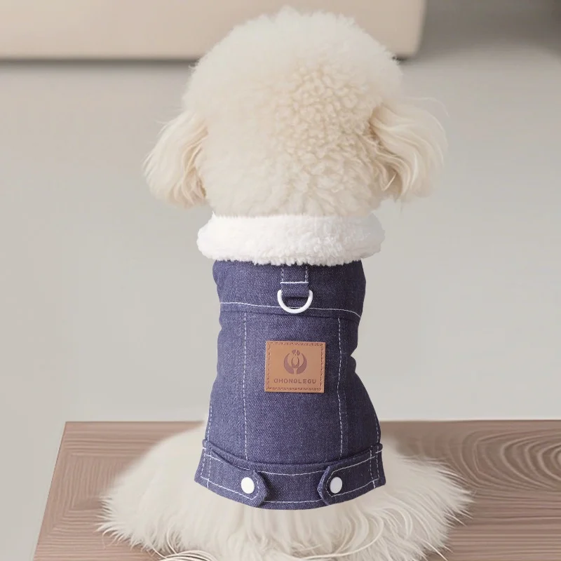 Chaqueta vaquera a la moda para perro, ropa cálida y suave para perros, chaqueta de invierno para cachorros, chaleco grueso para gato, abrigo, ropa para mascotas de Yorkshire