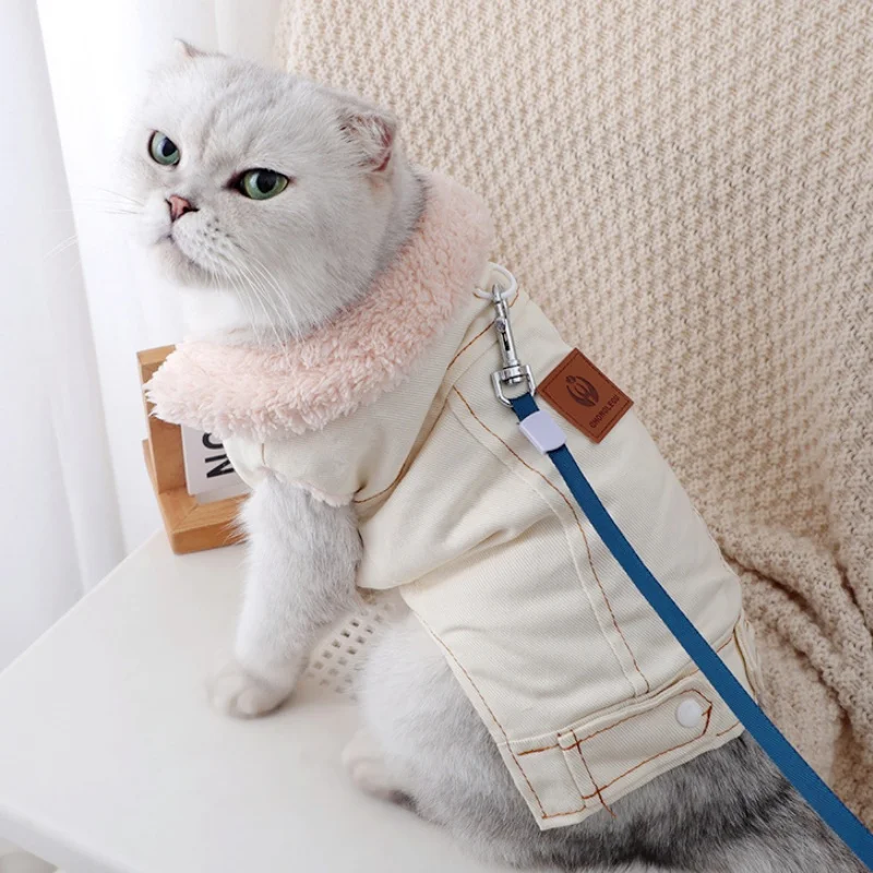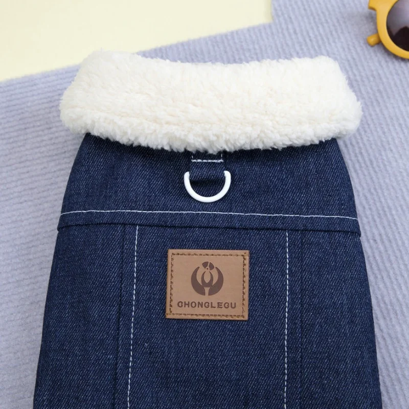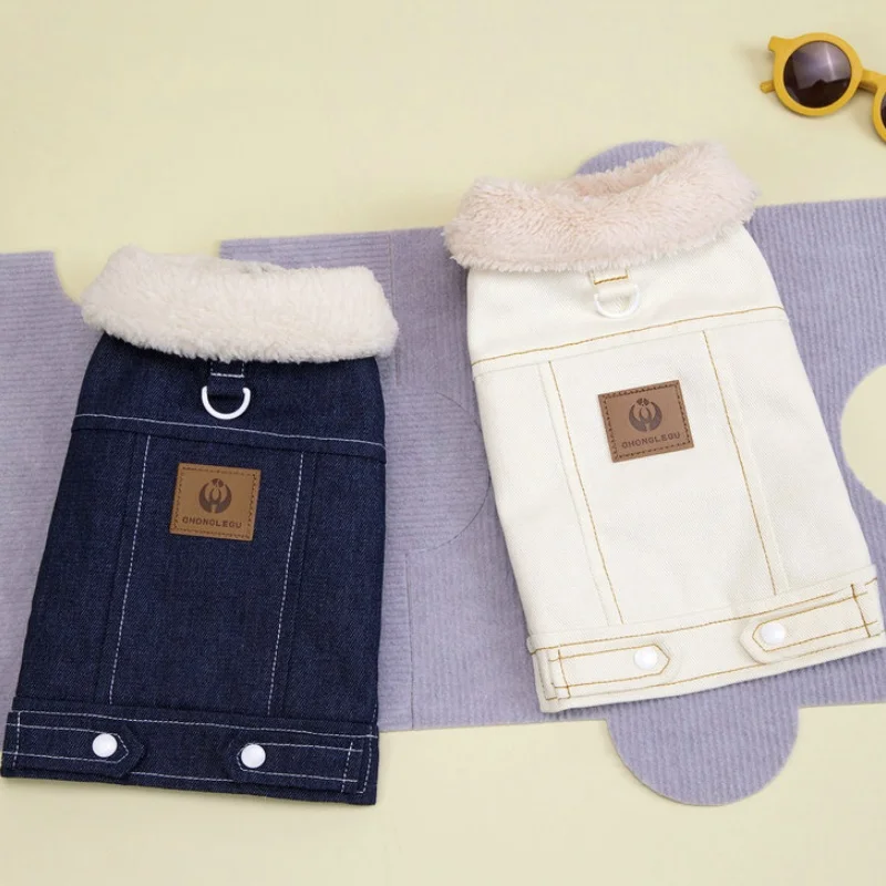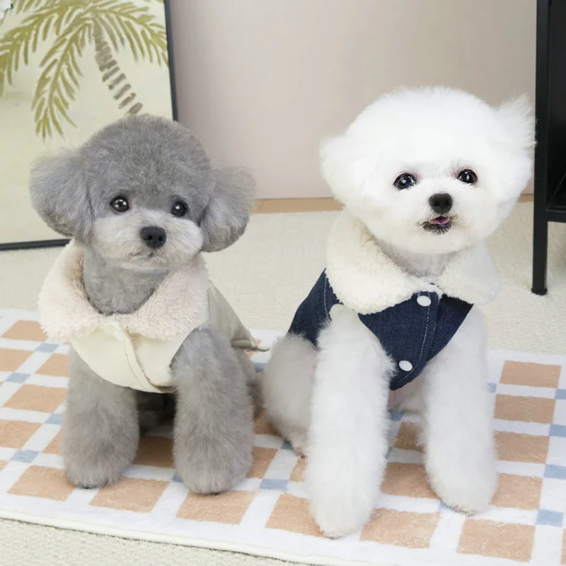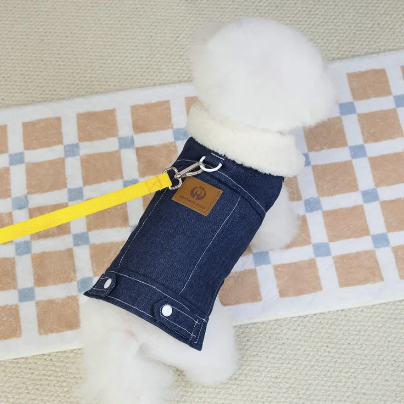 Chaqueta vaquera a la moda para perro, ropa cálida y suave para perros, chaqueta de invierno para cachorros, chaleco grueso para gato, abrigo, ropa para mascotas de Yorkshire
