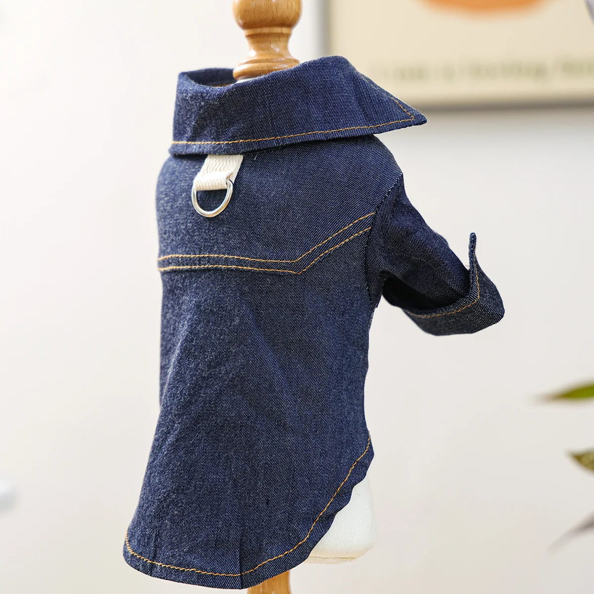 Chaqueta vaquera de otoño e invierno para mascotas, camisa vaquera cálida y cómoda para perros pequeños y gatos felices, ropa para perros pequeños - imagen 3