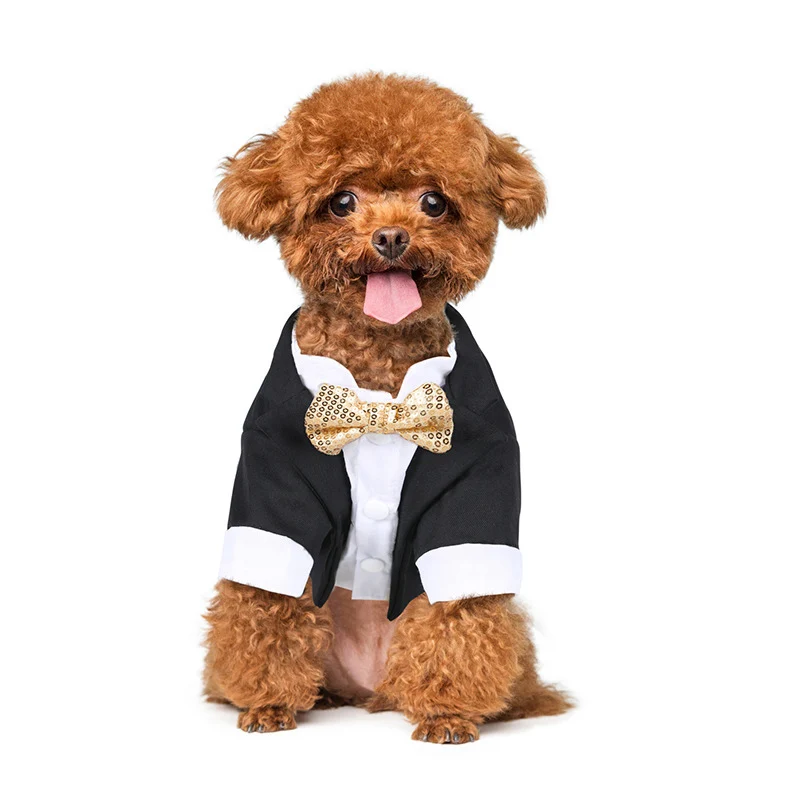 Chaquetas de boda para mascotas, traje para perros con pajarita, ropa Formal para cachorros, camisa de esmoquin, ropa de caballero para perros pequeños y medianos y gatos