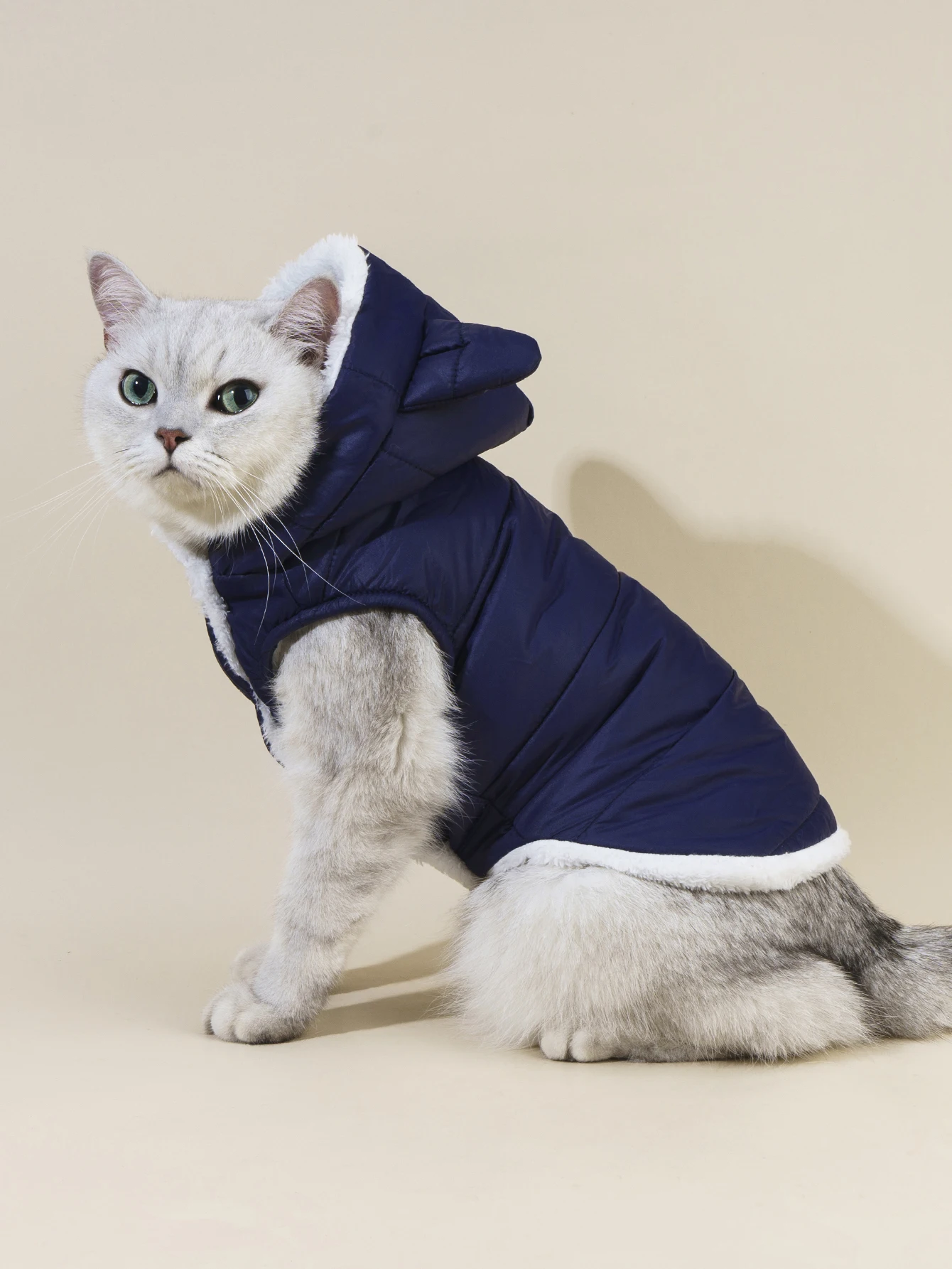 Chaquetas de plumón para perro con sombrero de oreja lindo, chaleco de felpa cálido para perro con sombrero, suéter de forro polar suave para perro pequeño, gato, cachorro lindo, Invierno C