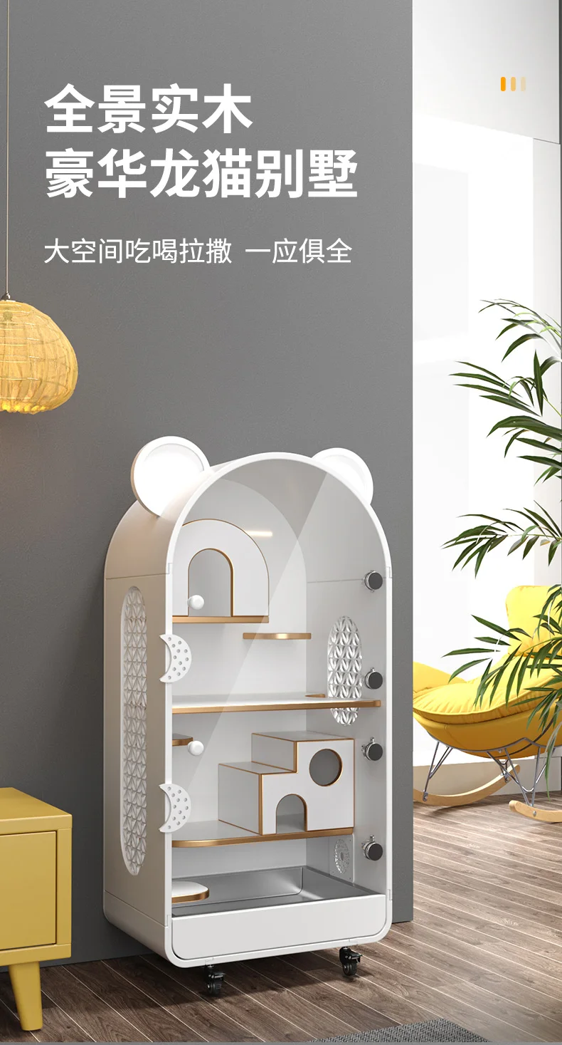 Chinchilla Villa Jaula de gabinete antimordeduras de madera maciza, jaula especial para citas, lujo, productos de compra