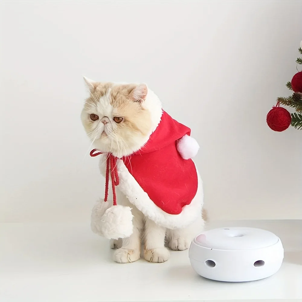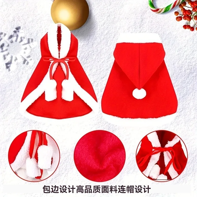 Christmas Cat Costume Santa Cosplay Pet Christmas Cape Dress Up Clothes Warm Red Scarf Cloak with Hat Pet Accessories