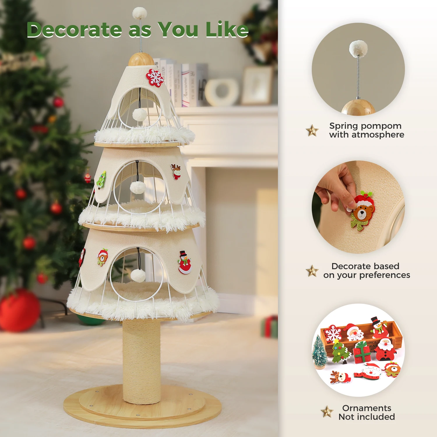 Árbol para gatos de Navidad con 3 condos acogedores, poste para rascar de sisal, torre para gatos de varios niveles, cama para gatos para interiores, muebles para gatos, juguetes para gatitos