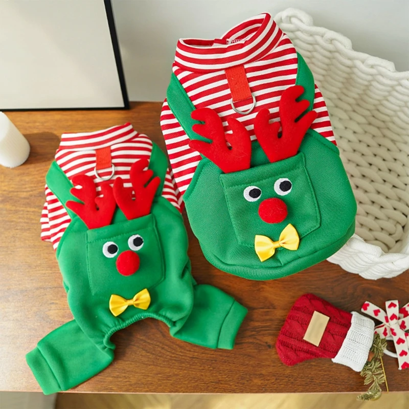 Nombre del producto: 501 correa de cuatro pedales alce-Navidad perro gato mascota gato ropa suministros para perros alce Teddy Bichon Oso