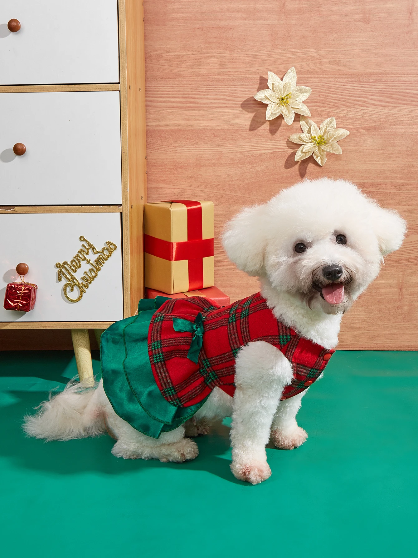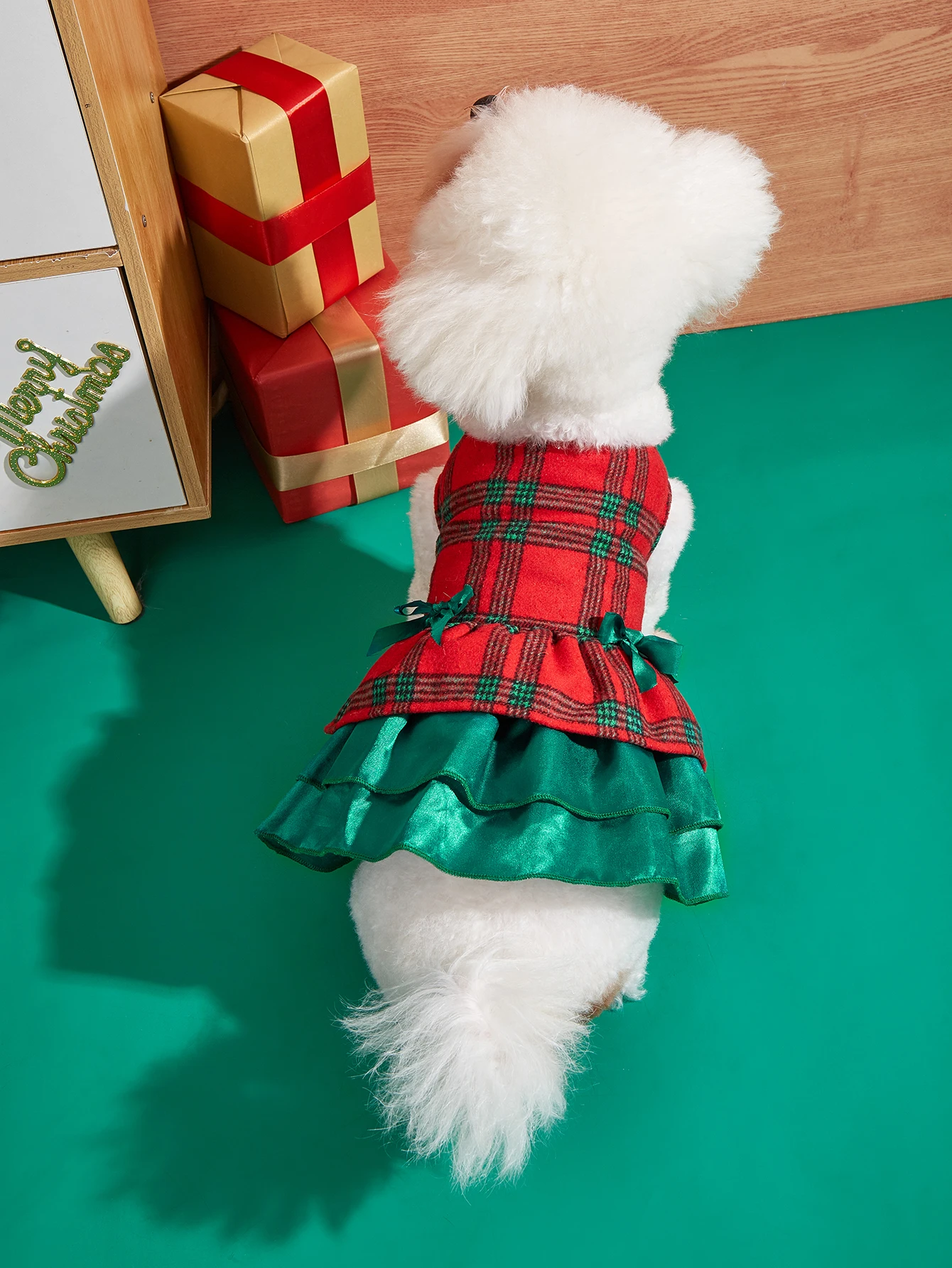 Christmas Puppy Dresses Dog Dress Classical Plaid Printed Puppy Clothes with Ruffle Tulle Bowknot Doggie Xmas Party Pet Cat War