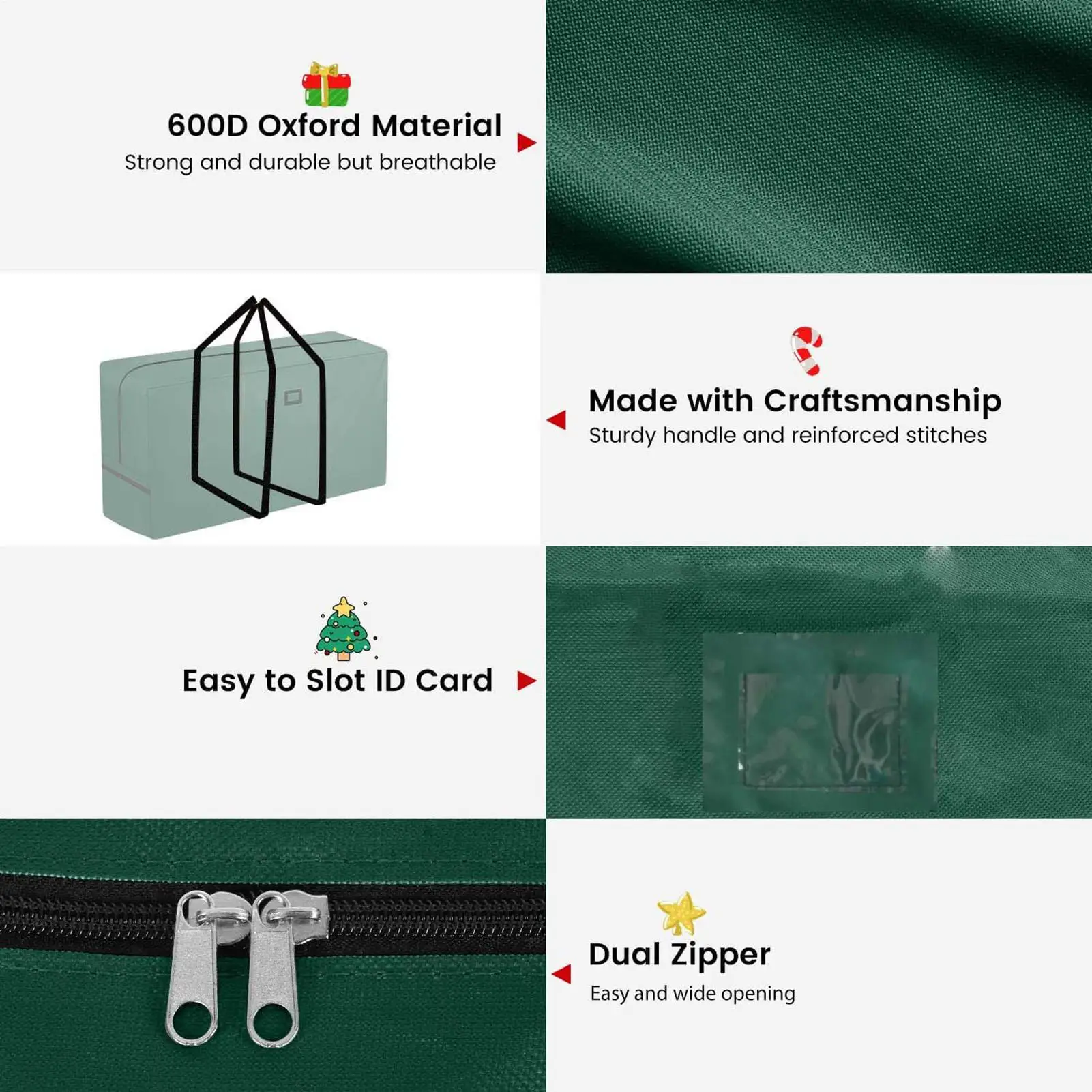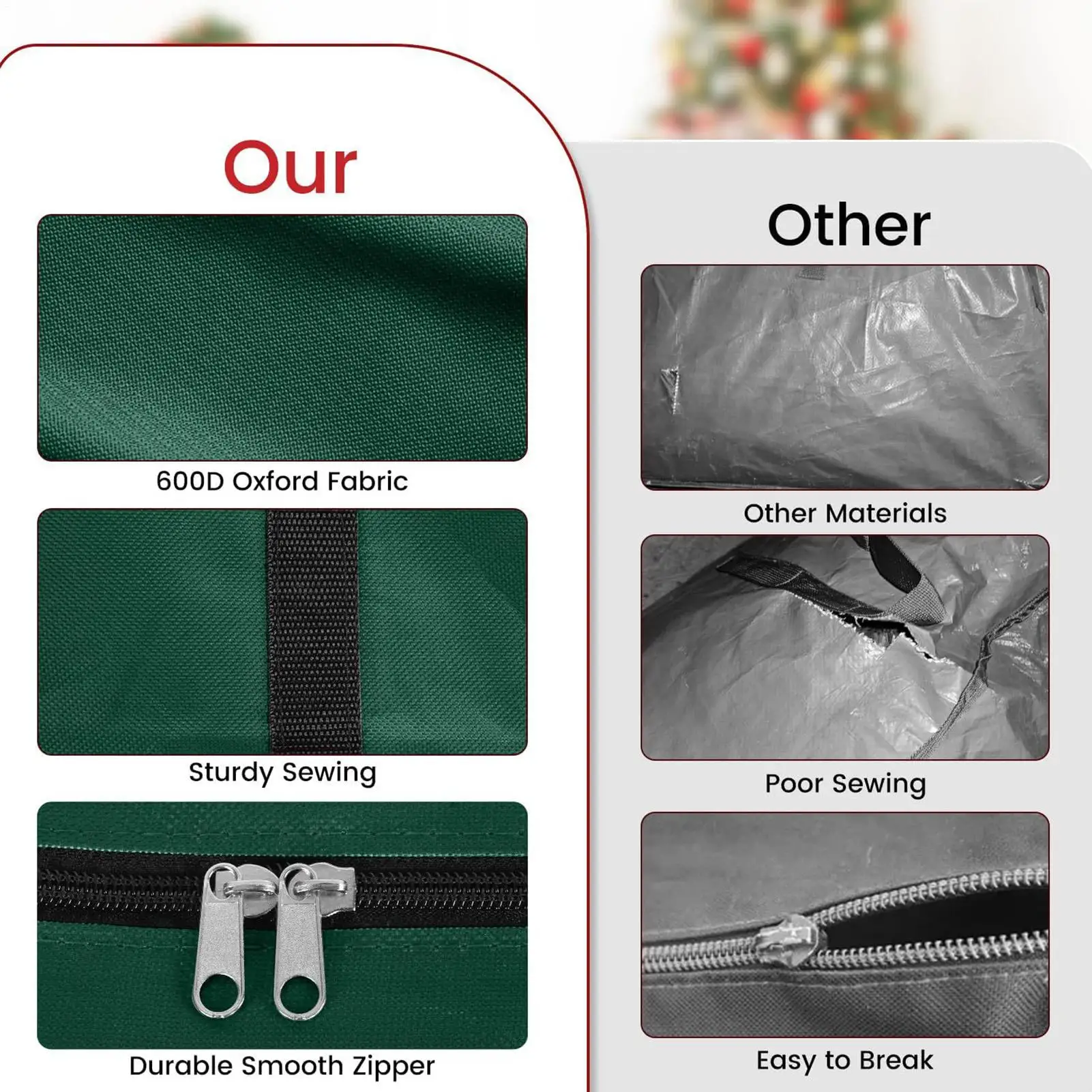 1.Heavy-Duty Fabric Advantage: Engineered with tear-resistant 600D Oxford fabric, this Christmas tree storage bag safeguards festive decorations, maintaining their conditions intact through repeated use and extended periods of storage