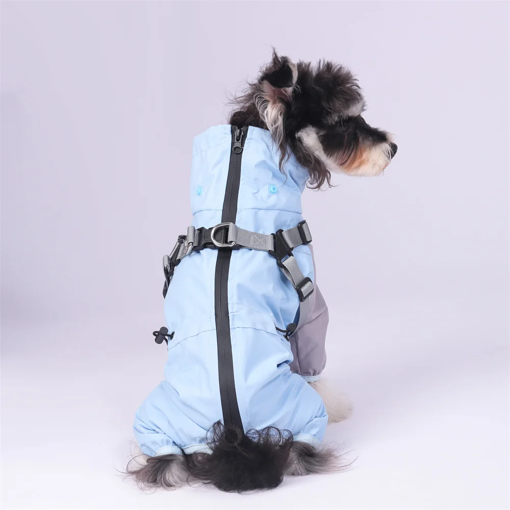Con un arnés desmontable, este impermeable ofrece versatilidad y facilidad de uso para su mascota.