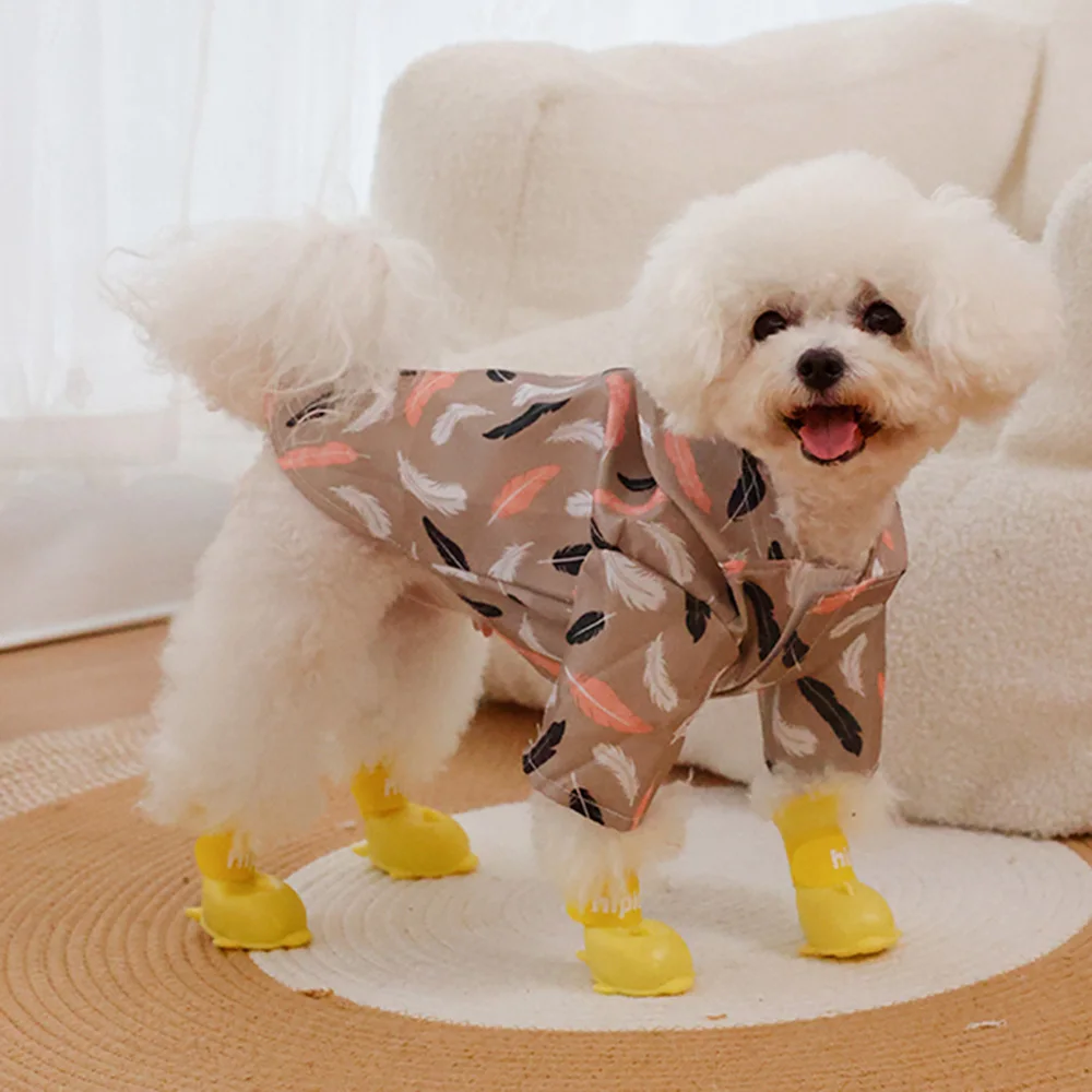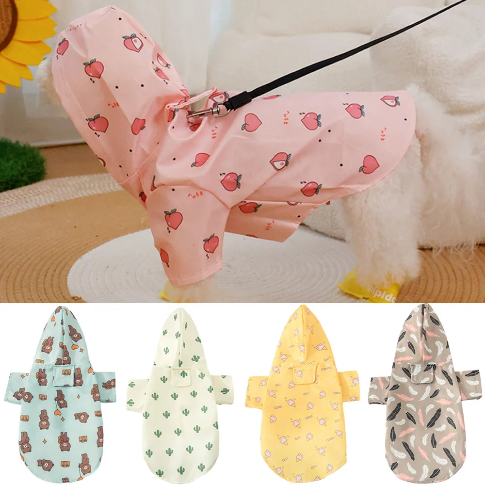 Chubasquero estampado para perros, Sudadera impermeable con capucha para mascotas con orificio de tracción para perros pequeños, Bichon, Chihuahua, cachorro, chubasquero para perros