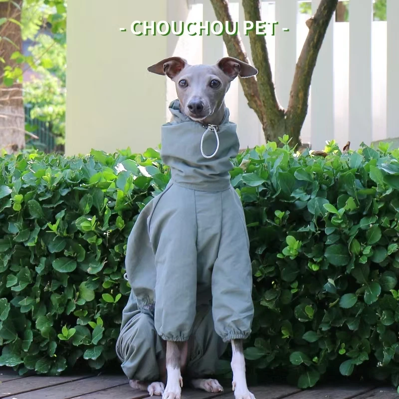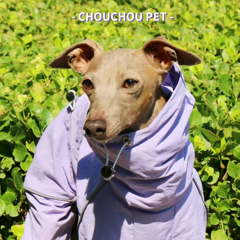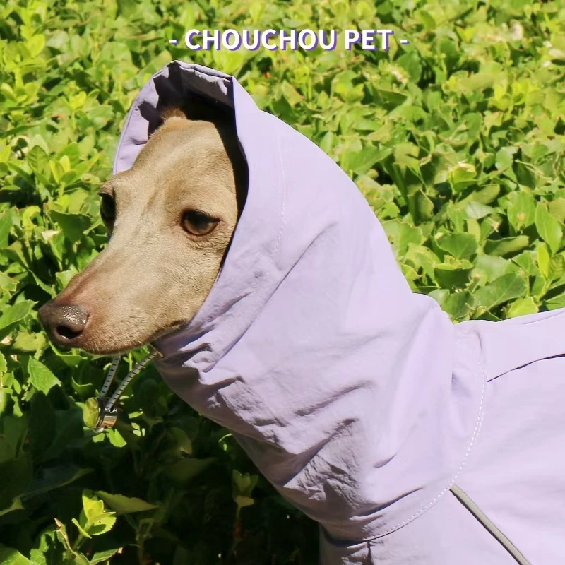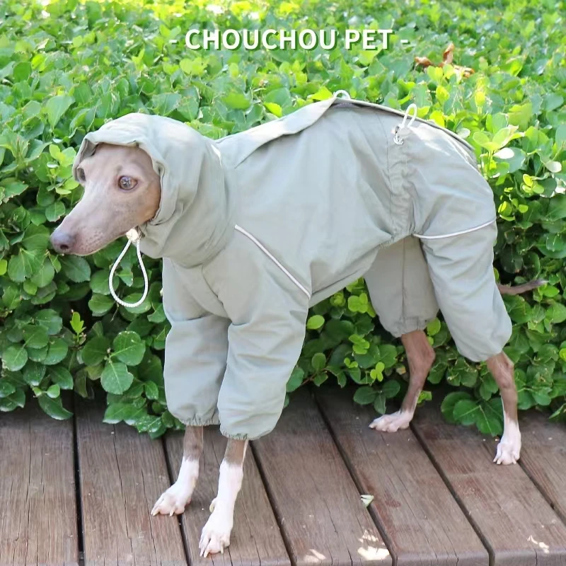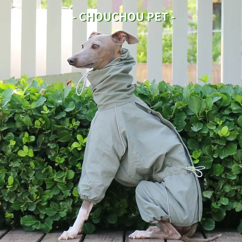 Ropa italiana Greyhound Whippet para mascotas para protección solar al aire libre de otoño, protección contra el viento y la lluvia con sombrero desmontable para ropa de perros