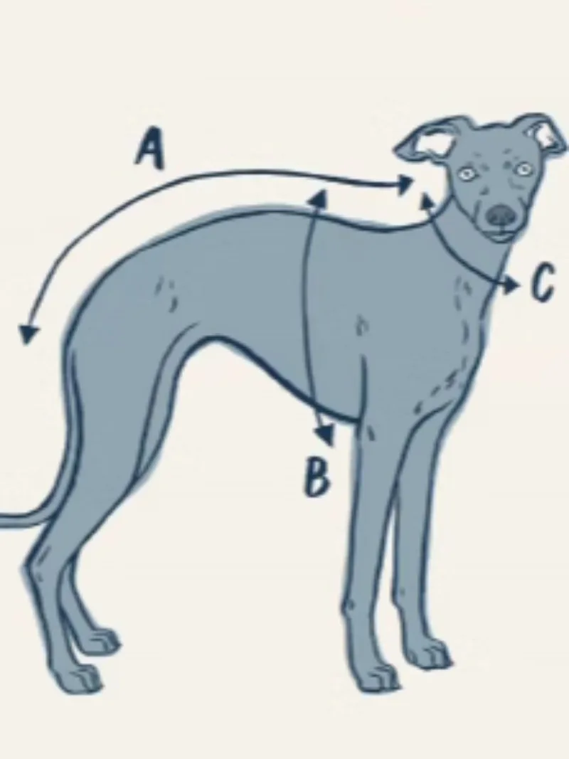 B.Tamaño del busto: use una cinta métrica suave para medir alrededor de la parte más amplia del pecho (generalmente ubicada detrás de las piernas delanteras), cerca del cabello pero no apretada.