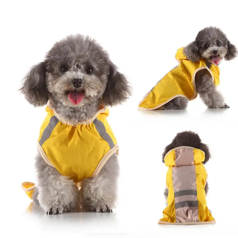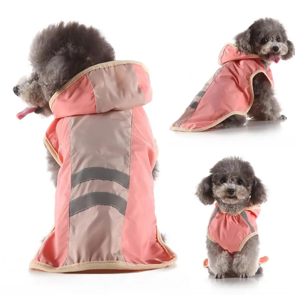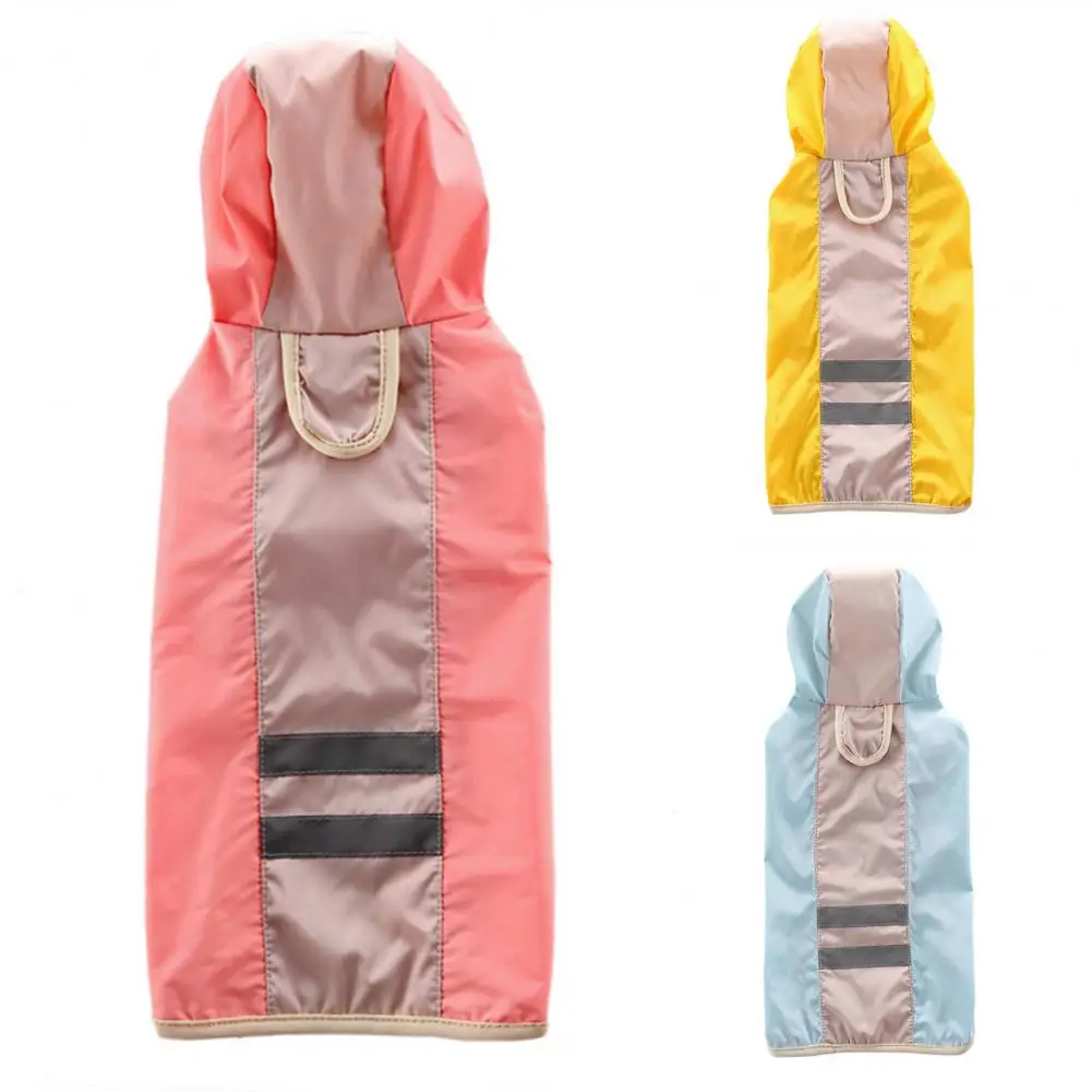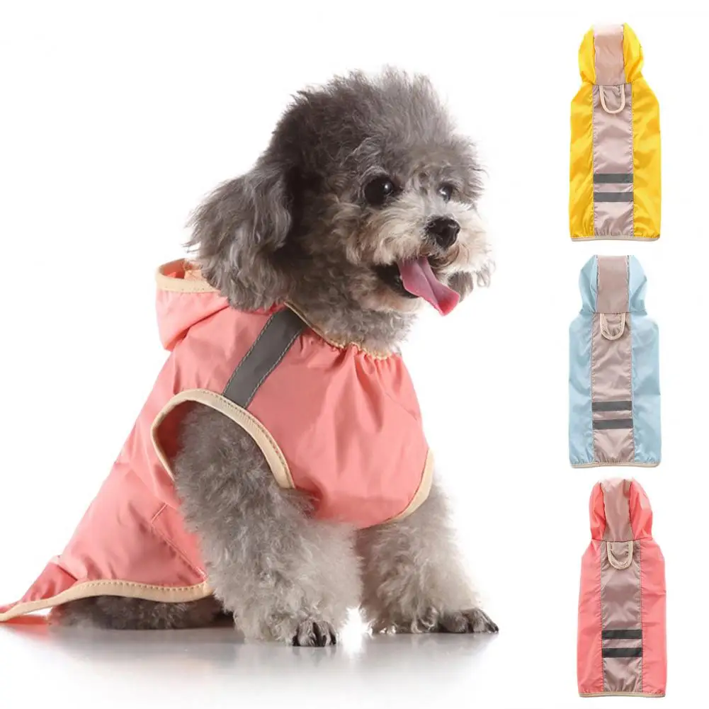 Chubasquero Impermeable a prueba de viento Resistente al desgaste Colores contrastantes Con capucha Reflectante Poliéster Cachorro Capa de lluvia para viajes