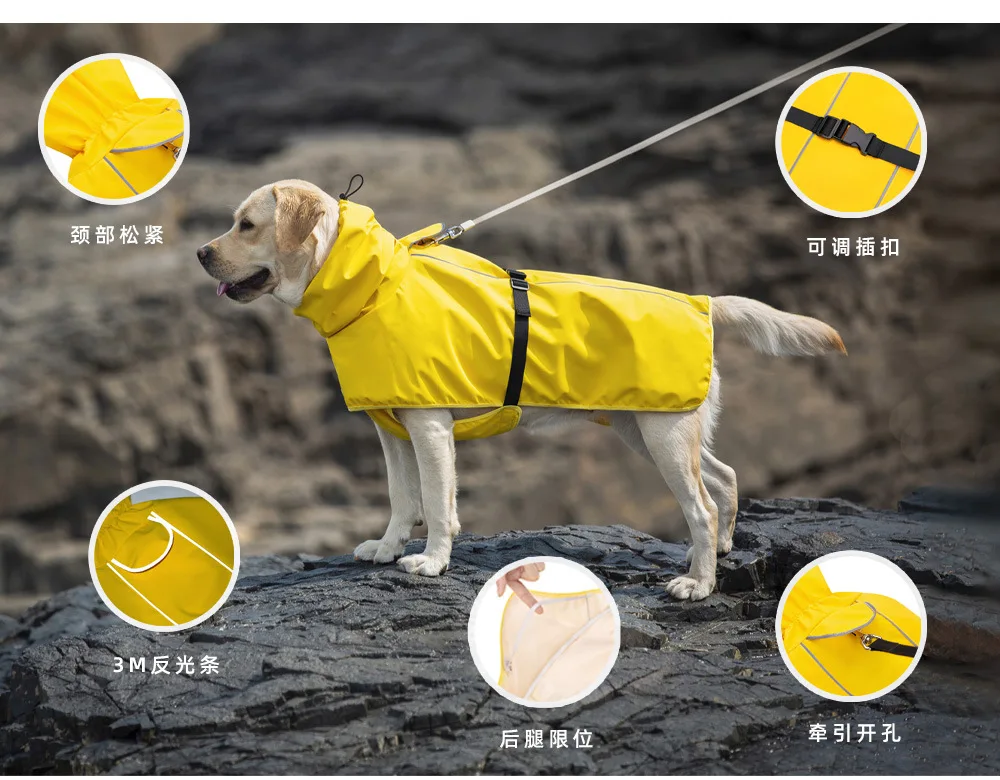 Chubasquero impermeable para perros de compañía, Poncho de cuello alto, Labrador reflectante, Golden Retriever Corgi, ropa para perros medianos y grandes