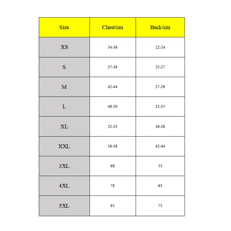 XXL: Longitud de la espalda 44 cm, circunferencia del pecho 46 cm