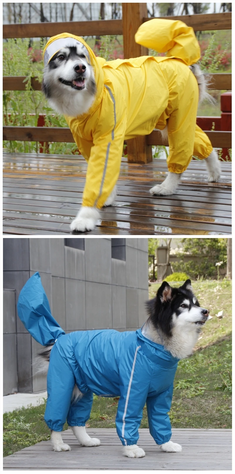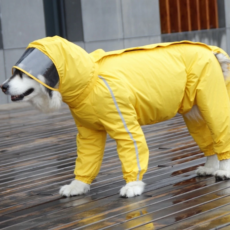 Chubasquero para mascotas, impermeable para perros grandes, Golden Retriever, samoyedo, protección del vientre, impermeable, ropa de día lluvioso, cuatro pies al aire libre
