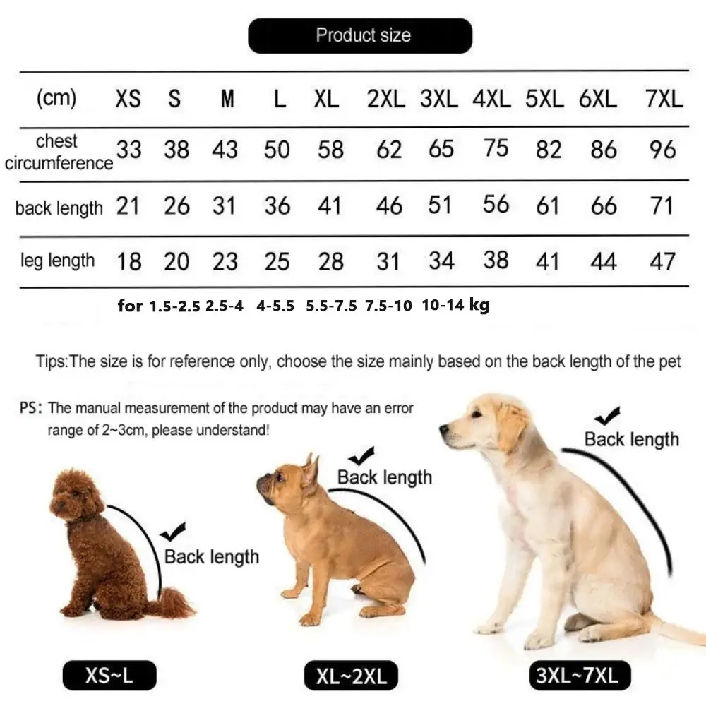 Rango completo de tamaños y ajuste ajustable:Disponible en 10 tallas desde XS hasta 6XL con elementos elásticos ajustables, lo que garantiza un ajuste perfecto para todas las razas, desde perros pequeños hasta extragrandes.
