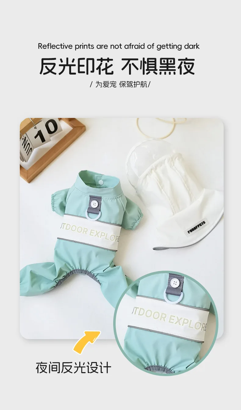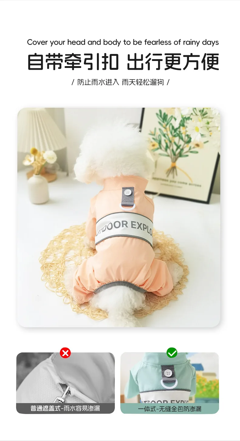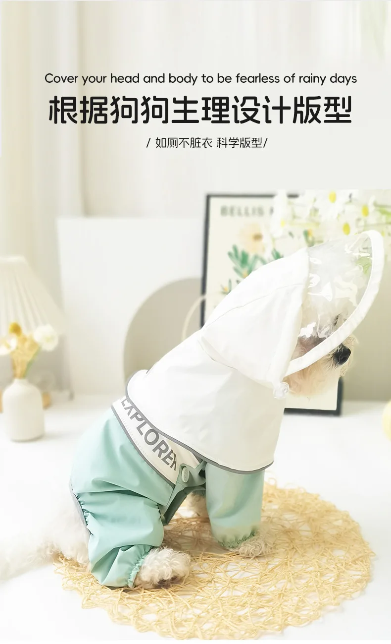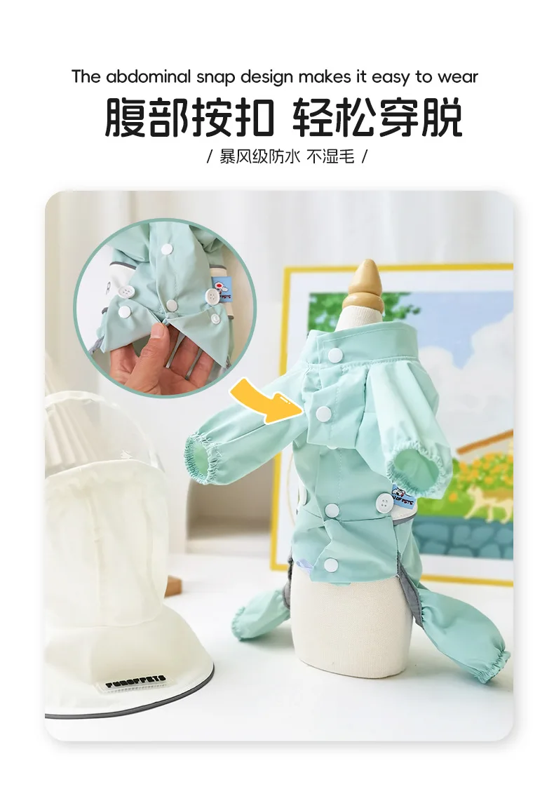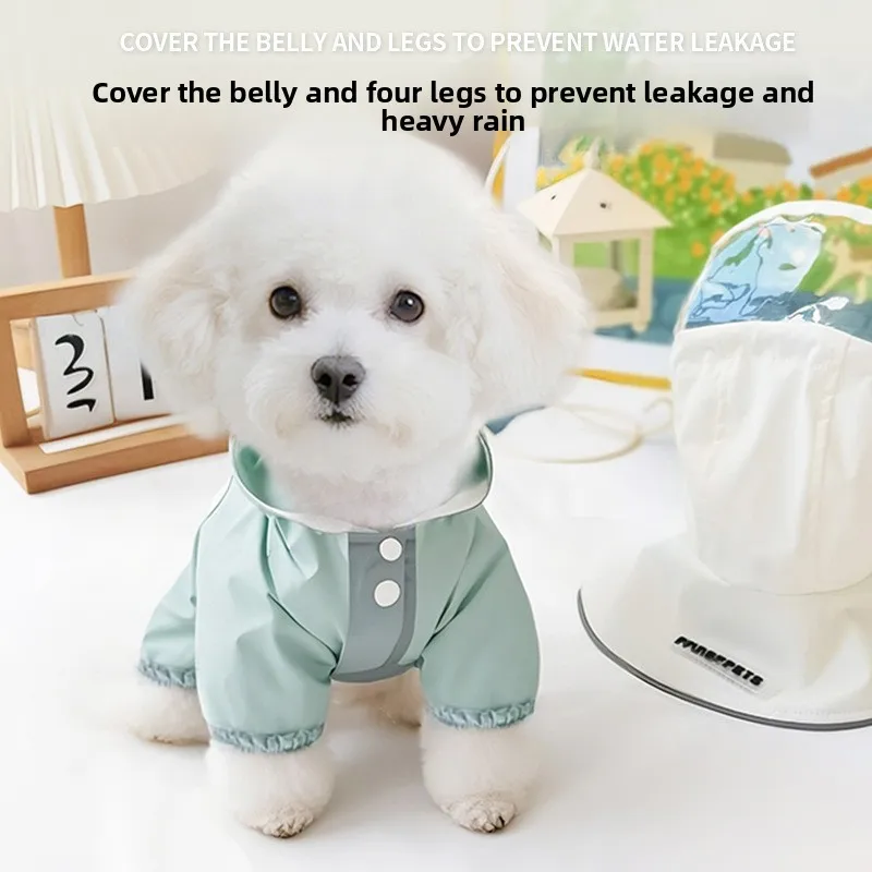 Chubasquero para perros, bolsa de cuatro patas, Poncho impermeable para el vientre, sombrero de tracción extraíble, productos para mascotas de peluche para perros pequeños todo incluido