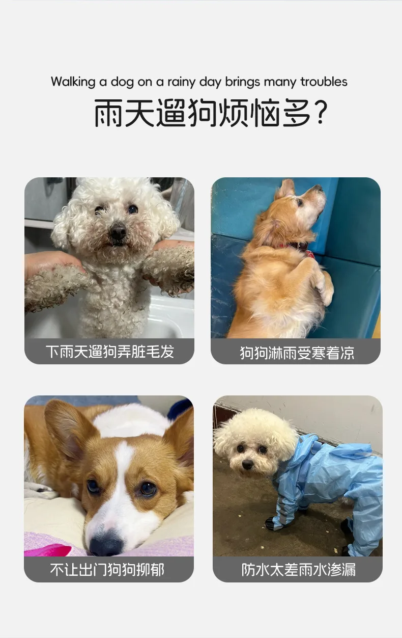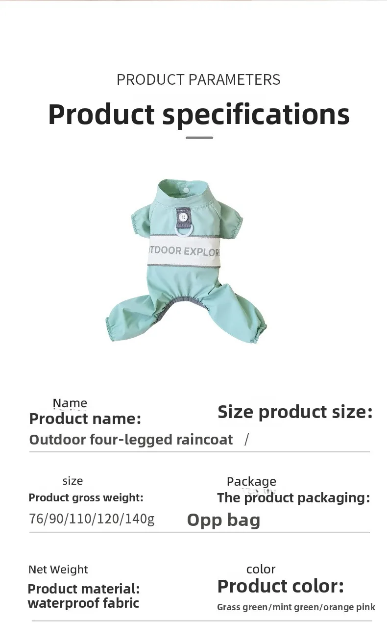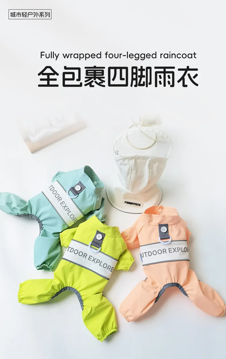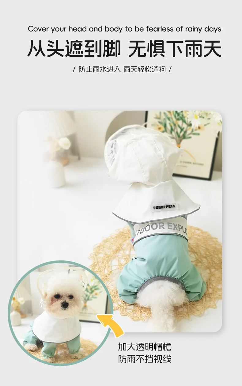 Chubasquero para perros, bolsa de cuatro patas, Poncho impermeable para el vientre, sombrero de tracción extraíble, productos para mascotas de peluche para perros pequeños todo incluido