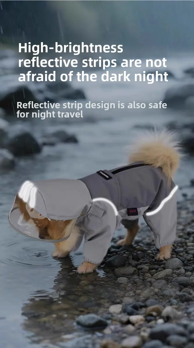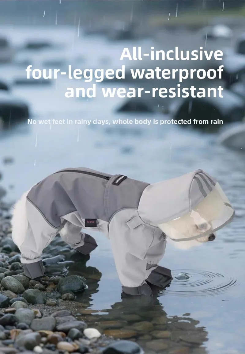 Chubasquero para perros, ropa de carga impermeable todo incluido de cuatro pies