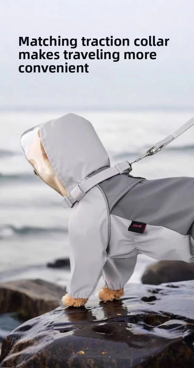 Chubasquero para perros de cuatro patas, cortavientos impermeable totalmente cubierto, impermeable especial para mascotas, protege la viga, cortavientos con cuerda de tracción