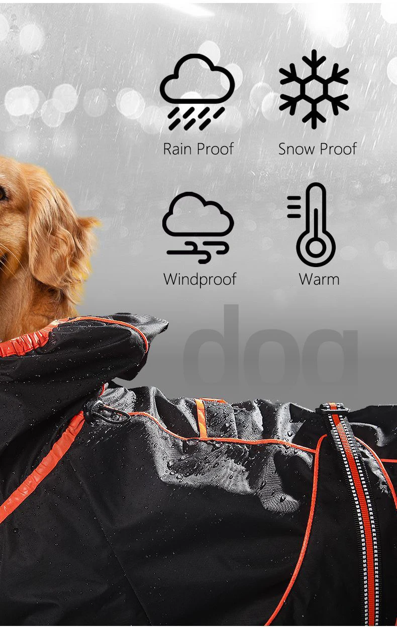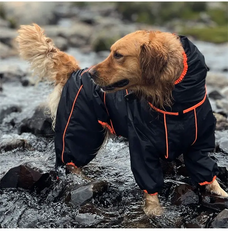 Es realmente un excelente impermeable para perros. Estoy un poco decepcionado con el color, ya que pensé que era negro y rojo, pero es naranja. También preferiría un precio que incluya el envío gratuito. También sería genial si se añadiera un pequeño sombrero para proteger la cabeza, los ojos y las orejas. Pero, en general, este es el mejor impermeable para perros que he encontrado y estoy muy satisfecho con mi compra.