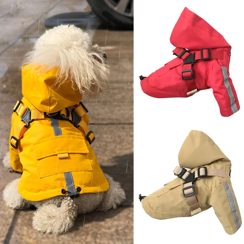 Chubasquero reflectante para cachorros y perros con arnés, ropa impermeable para mascotas, traje de Yorkshire, ropa para masoctas impermeables para la lluvia