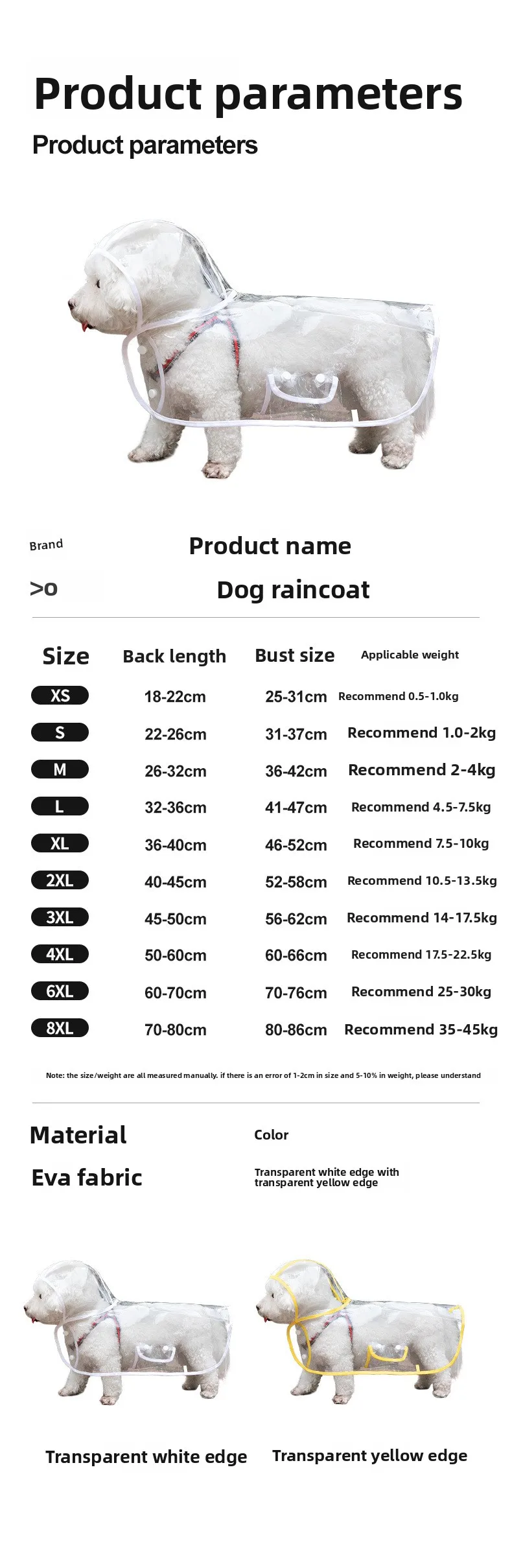 Chubasquero transparente impermeable para perros, ropa para días lluviosos, artefacto para caminar para perros, Poncho de peluche Bigbear para mascotas pequeñas y medianas, impermeable para mascotas