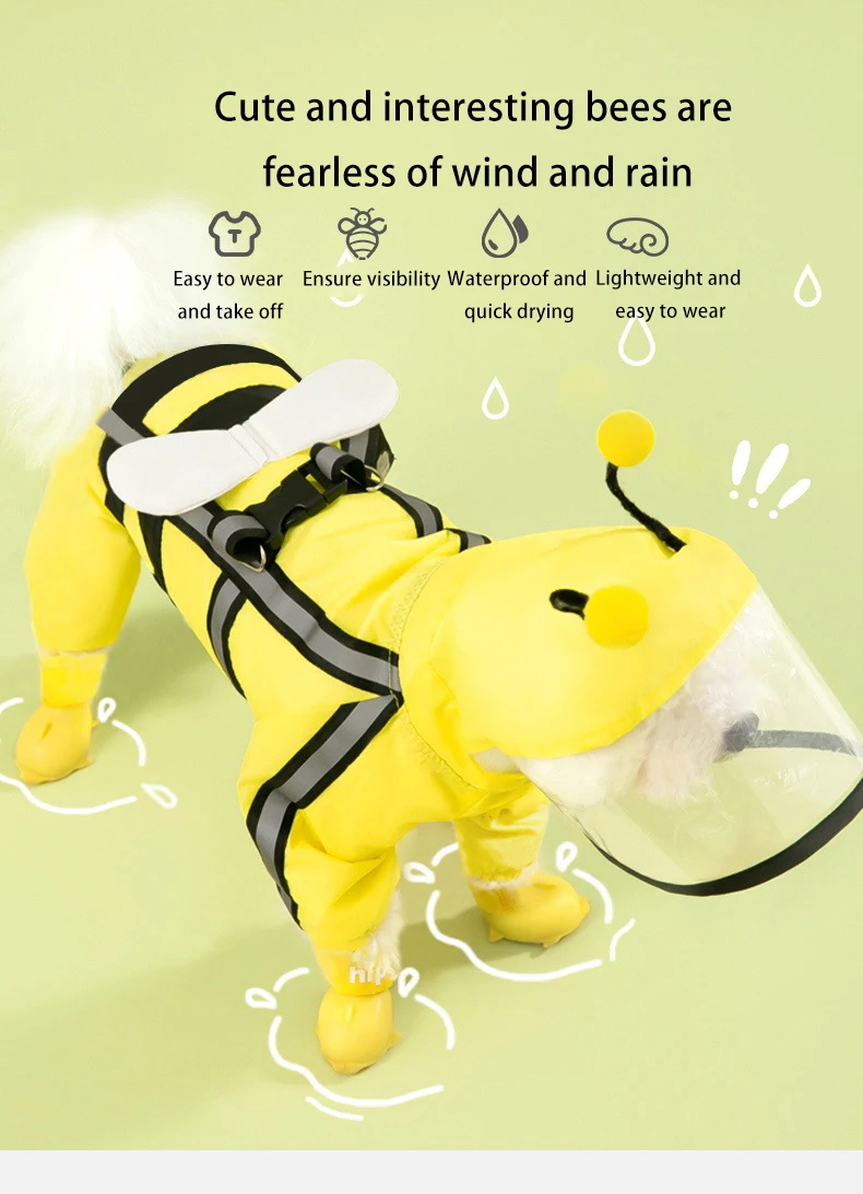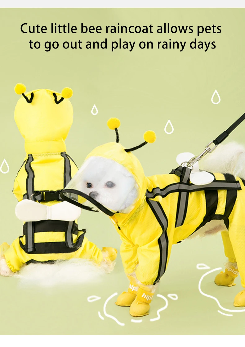 Chubasqueros con forma de abeja para perros, Poncho reflectante para mascotas, adecuado para mascotas, chaqueta impermeable, ropa para cachorros de moda